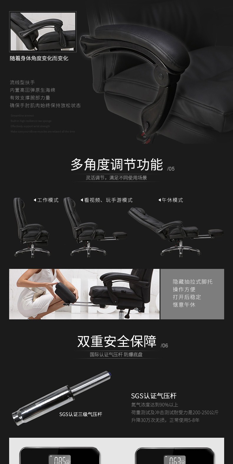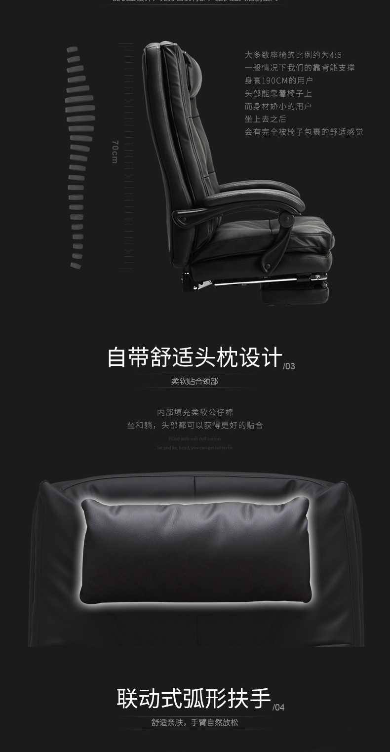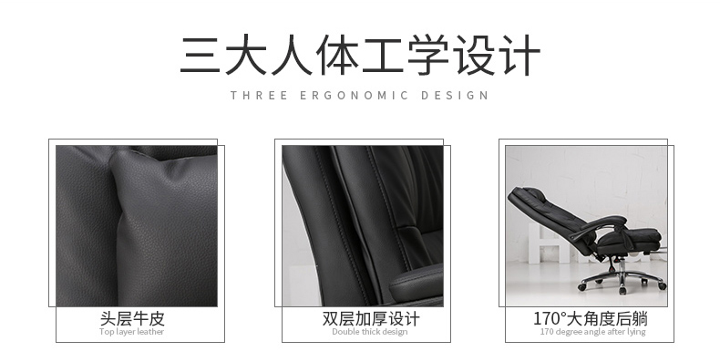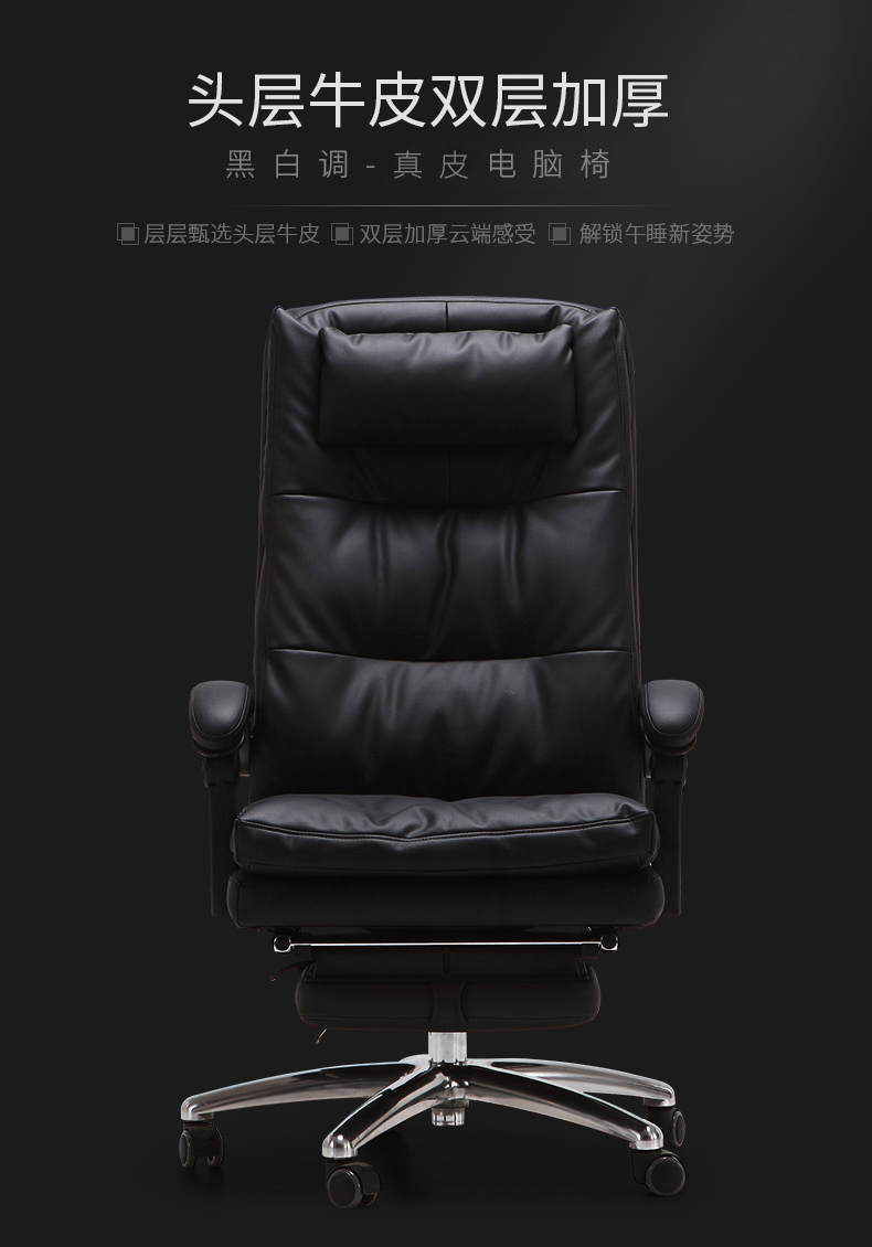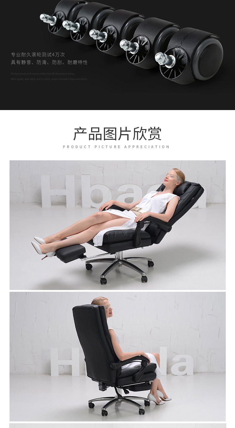 商品名称:黑白调(Hbada)电脑椅 老板椅真皮 办公椅家用人体工学椅子可躺