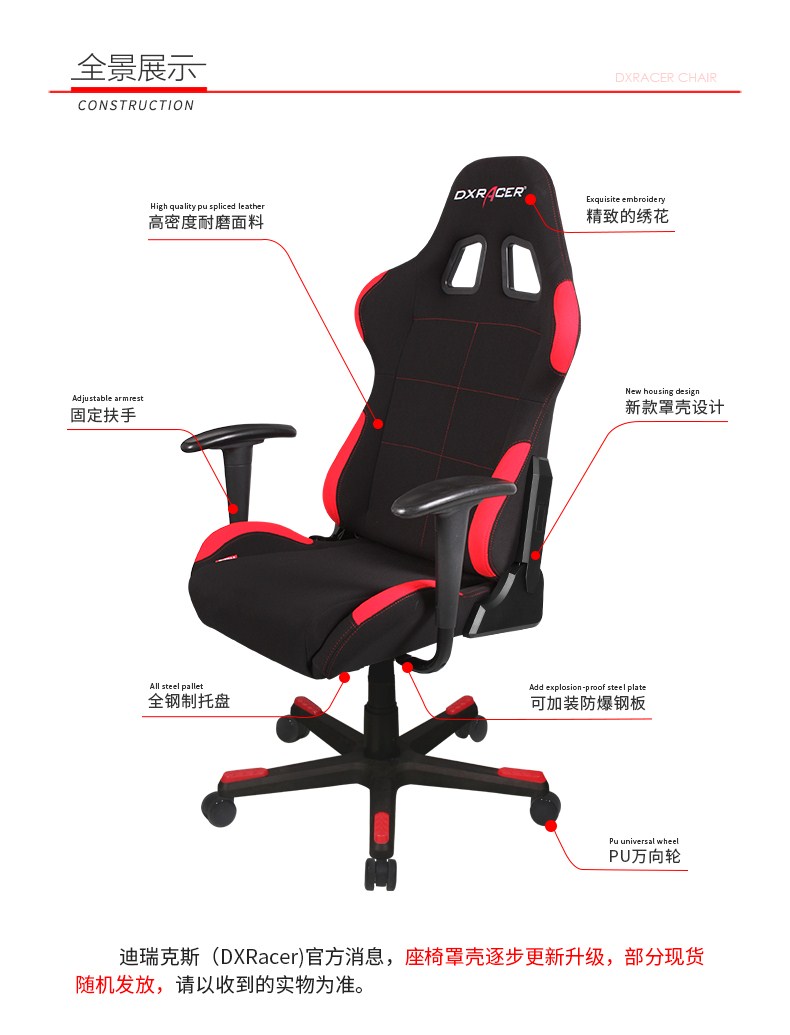 迪锐克斯(DXRACER)F01电脑椅子 可转办公椅 人体工学椅 电竞椅