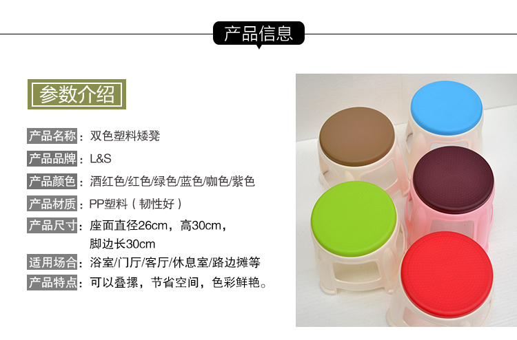 商品名称:L-S塑料凳矮凳加厚成人家用小板凳塑料茶几圆凳换鞋凳时尚小凳子
