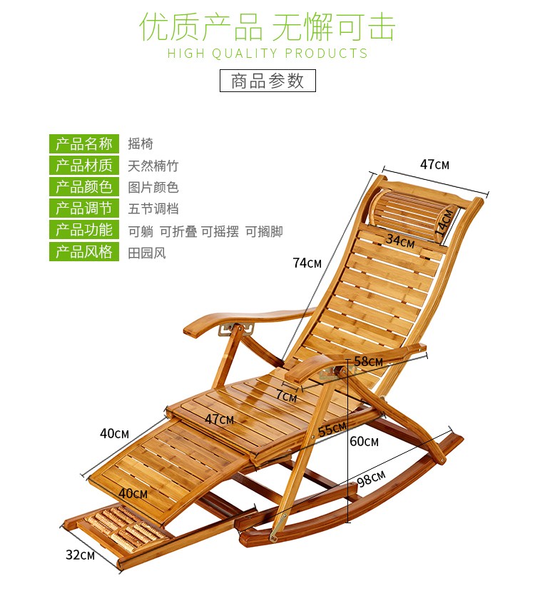 商品名称:圣驼藤椅摇椅成人摇摇椅逍遥椅实木藤制午休懒人竹躺椅阳台折叠