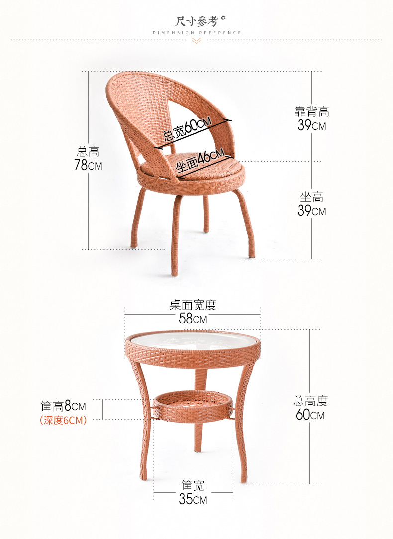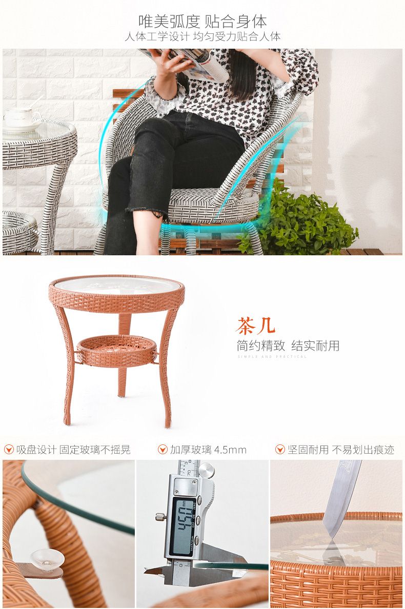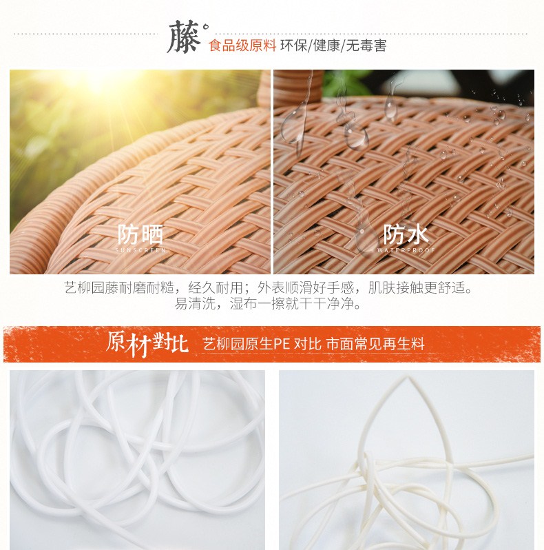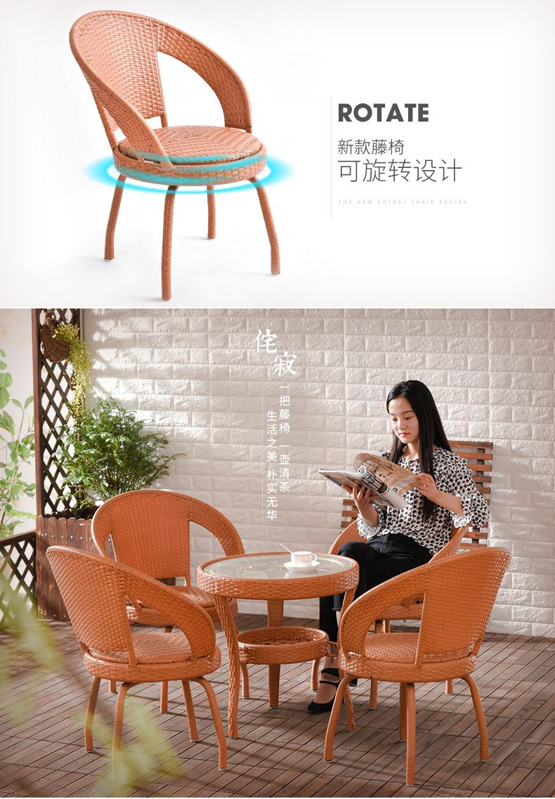 商品名称:艺柳园 旋转藤椅三件套 阳台桌椅 休闲桌椅 腾椅 藤椅子户外庭院