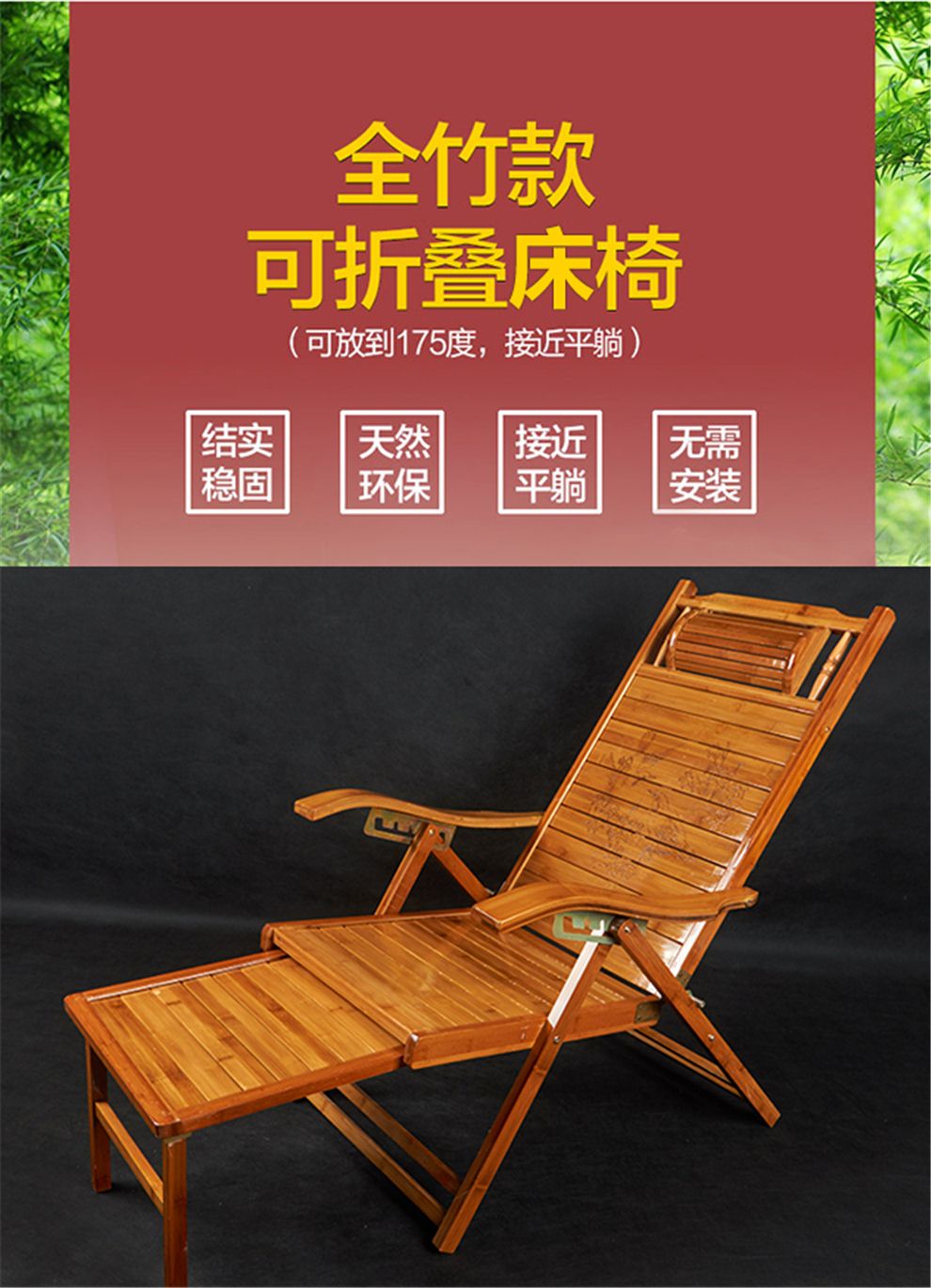 商品名称:2018新款床椅躺椅折叠椅子家用成年人老人竹椅办公室躺椅阳台午休