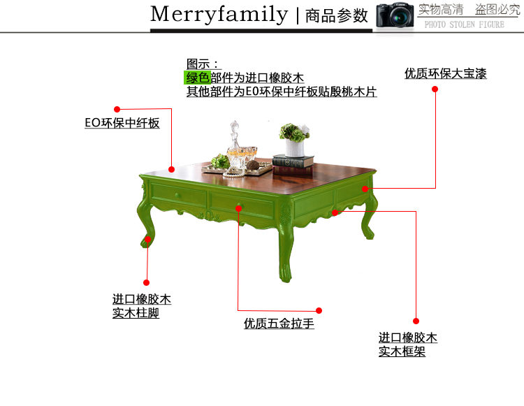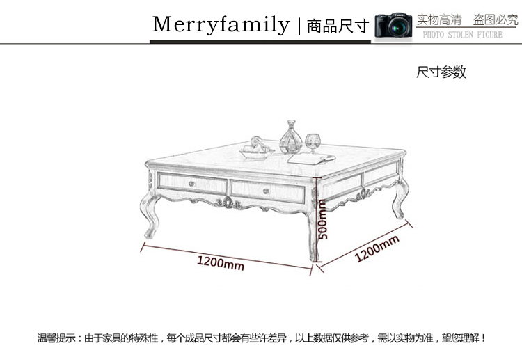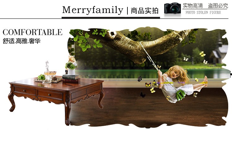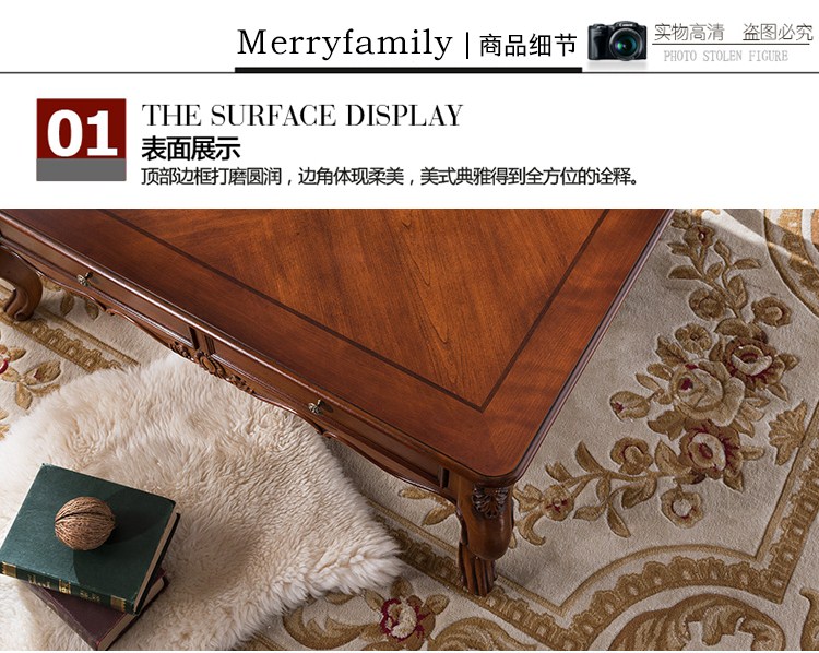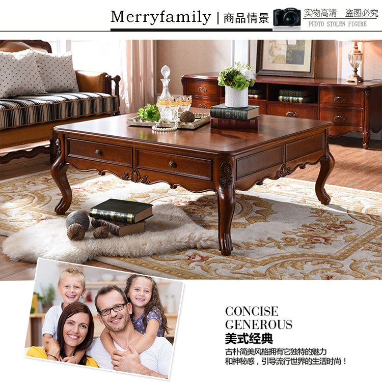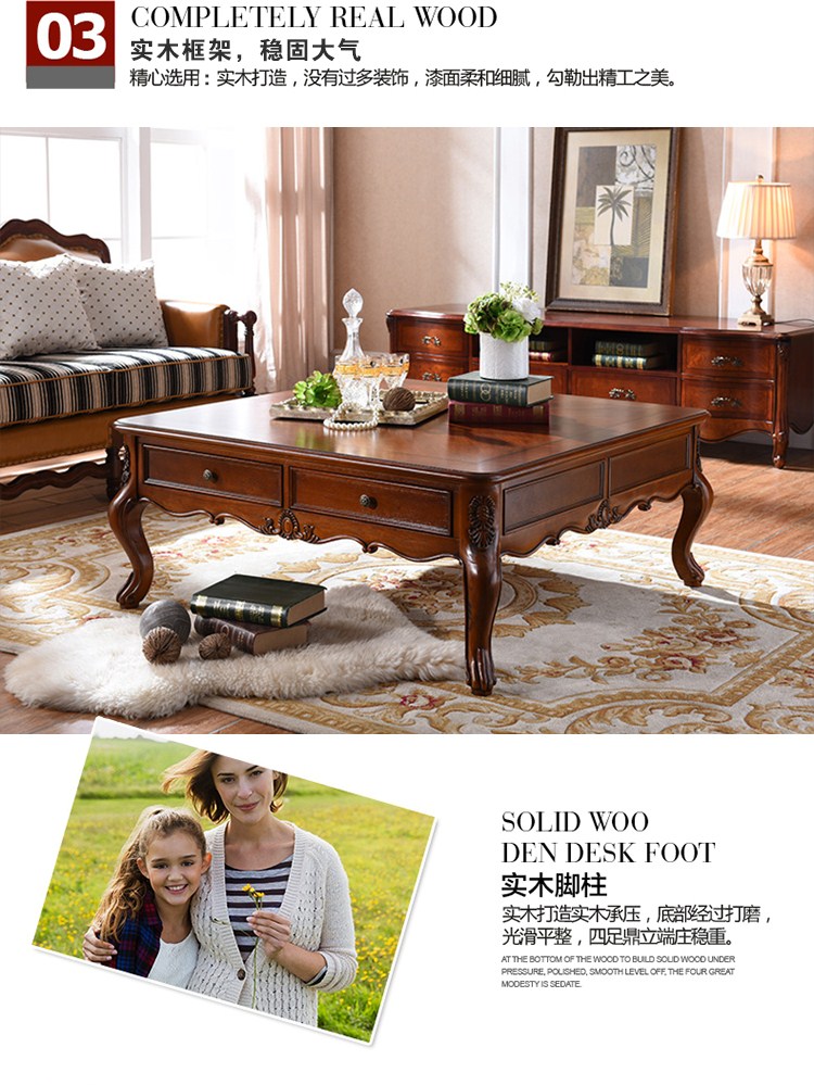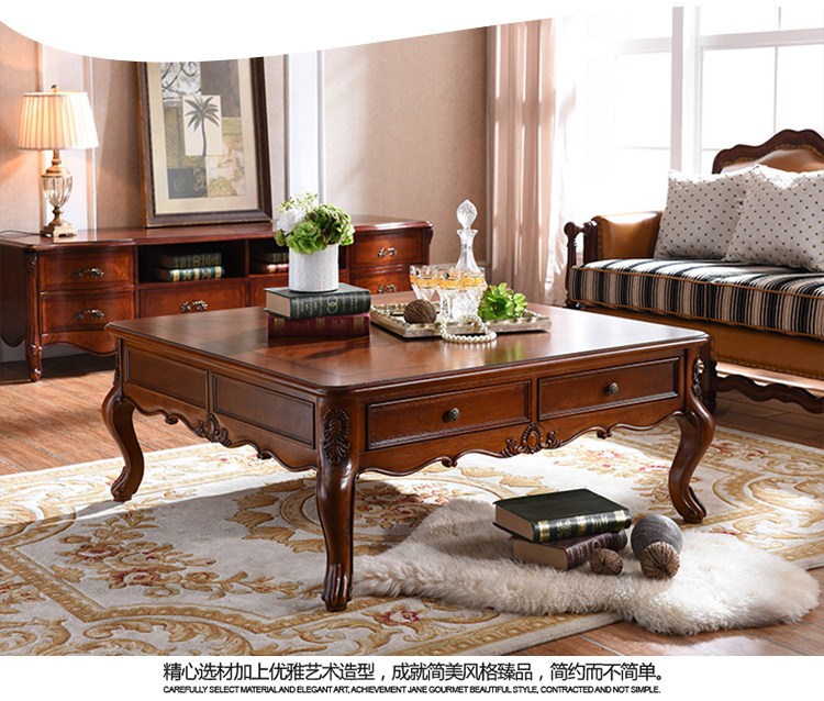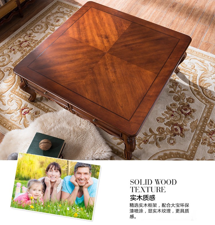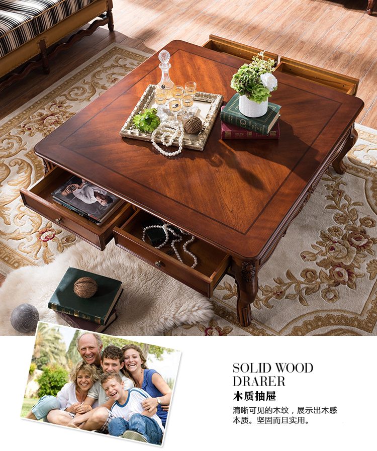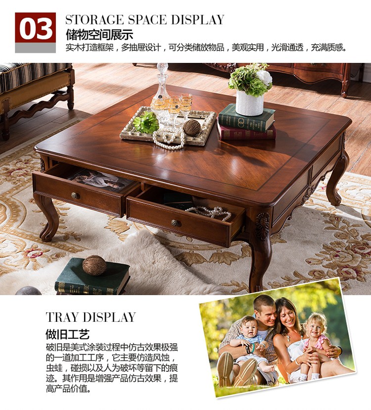 商品名称:乐满庭美式乡村正方形茶几实木茶几桌复古大方几客厅泡茶桌古典