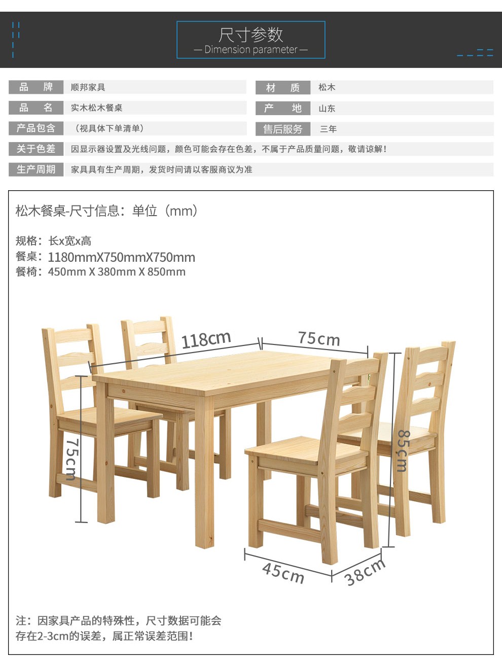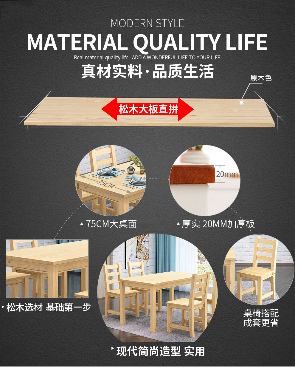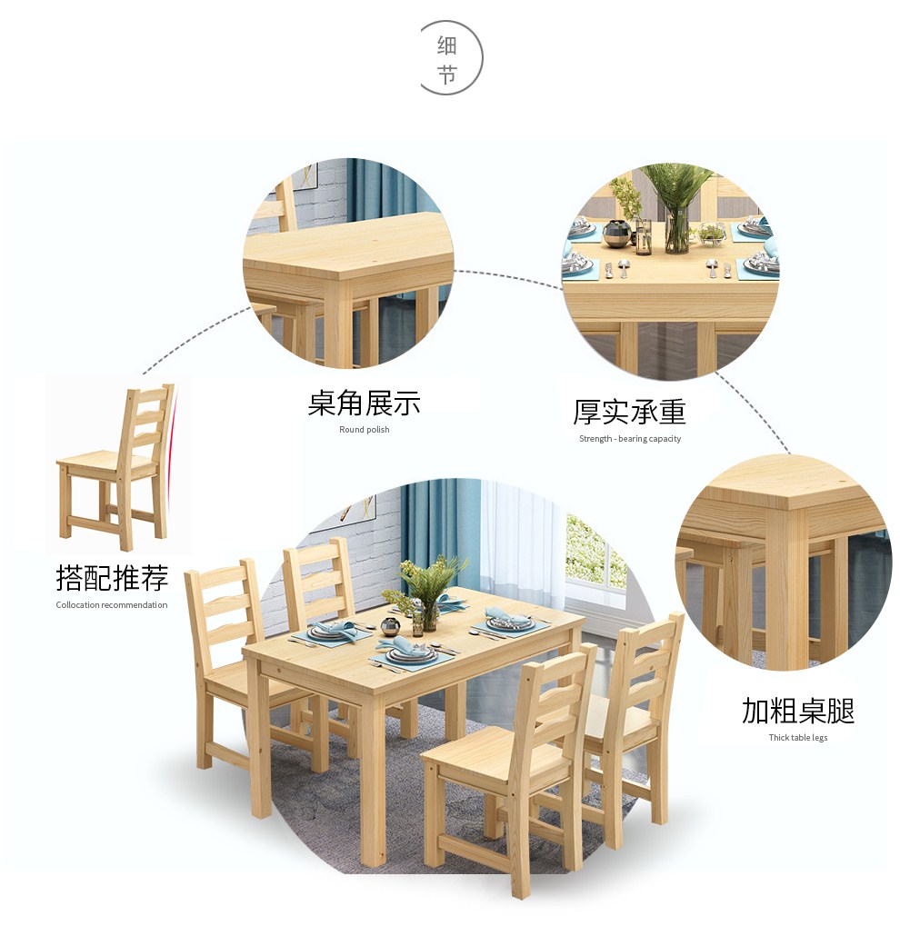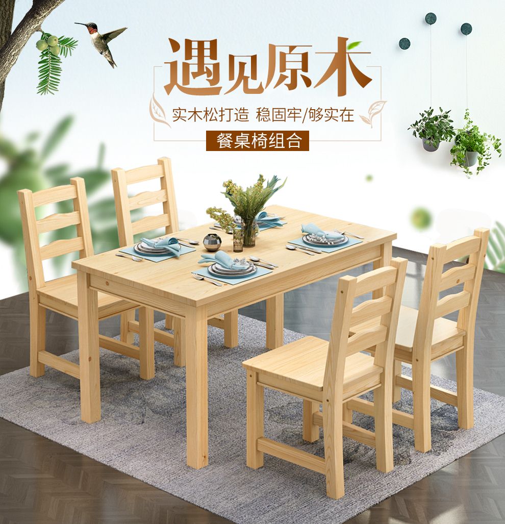 商品名称:顺邦 实木餐桌现代简约 一桌四椅饭桌餐桌椅组合 原木色 一桌四椅