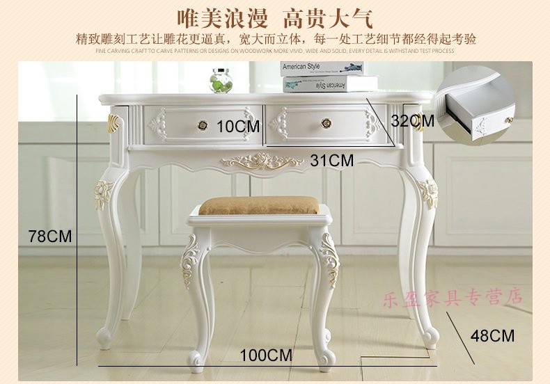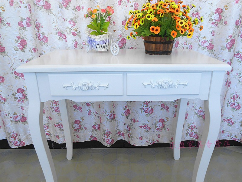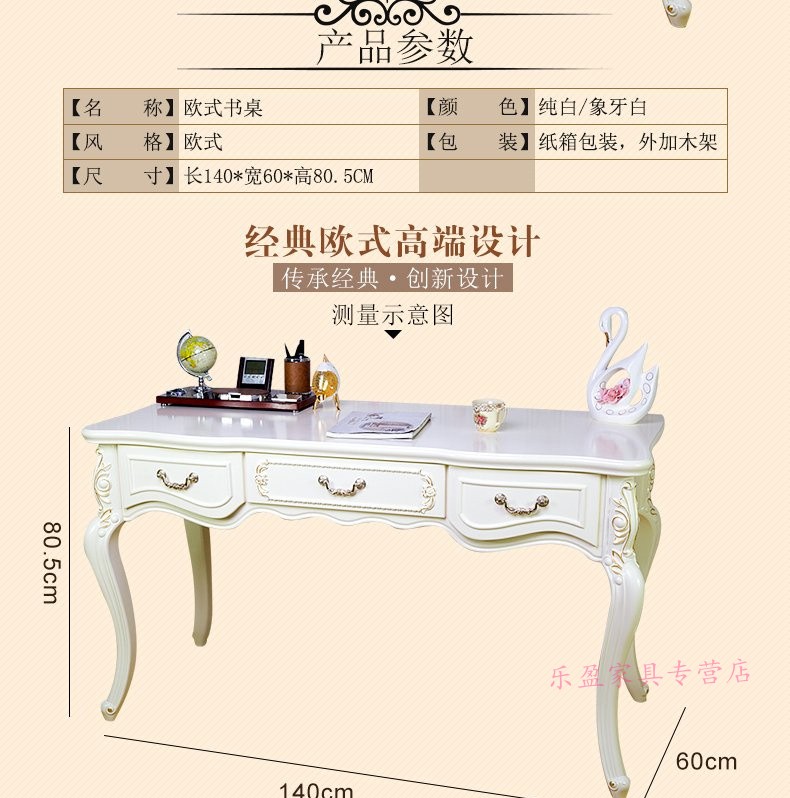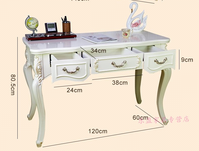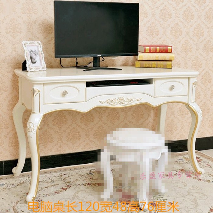 商品名称:欧式书桌田园台式简约白色卧室桌子写字台小户型学生木制电脑桌