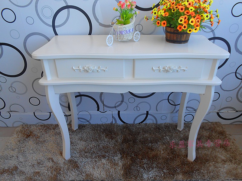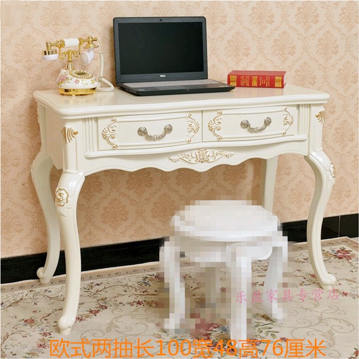 欧式书桌田园台式简约白色卧室桌子写字台小户型学生木制电脑桌