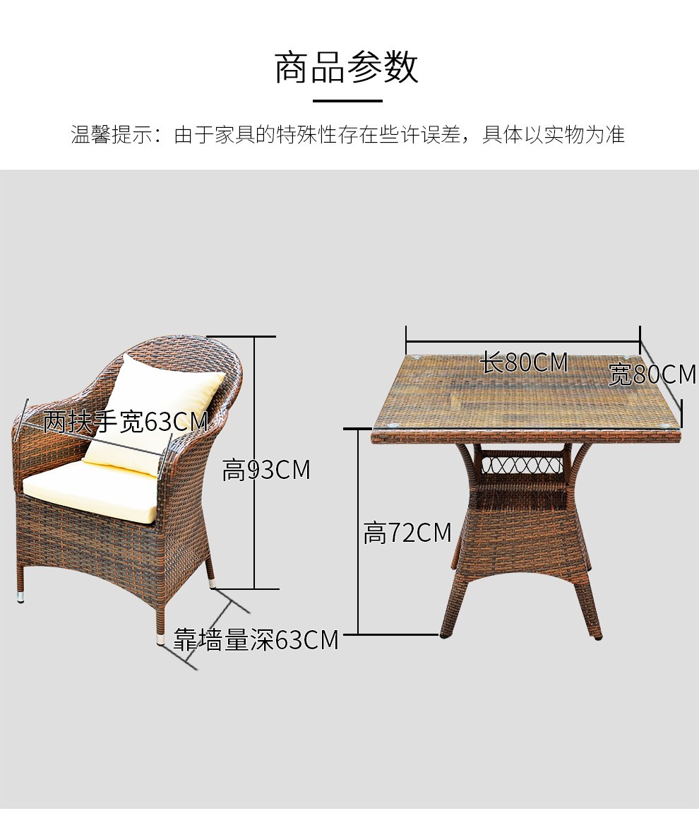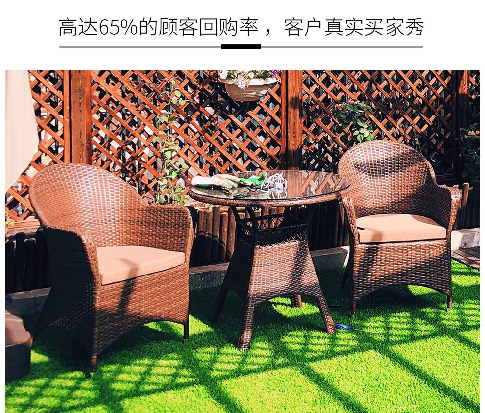 商品名称:嘉勒美(JIALEMEI) 户外桌椅藤椅休闲庭院阳台三件套藤编家具一