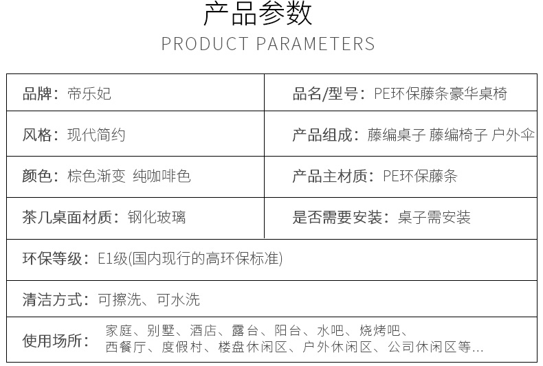 商品名称:帝乐妃家装节藤椅户外桌椅庭院室外阳台三件套休闲组合别墅花园现