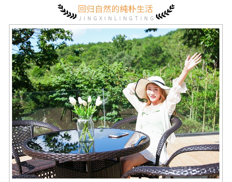 帝乐妃家装节藤椅户外桌椅庭院室外阳台三件套休闲组合别墅花园现