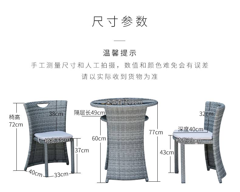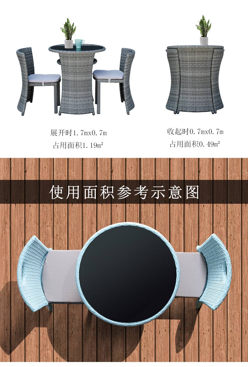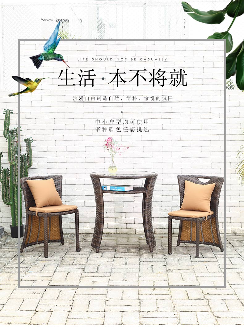 商品名称:紫叶 (ziye) 阳台桌椅藤椅三件套 阳台小茶几组合户外休闲简约