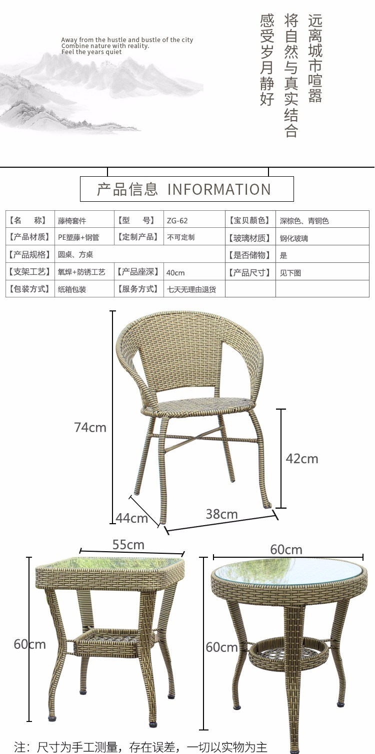 商品名称:藤椅三件套阳台桌椅创意户外藤椅子藤制单张茶几三件套五件套家用