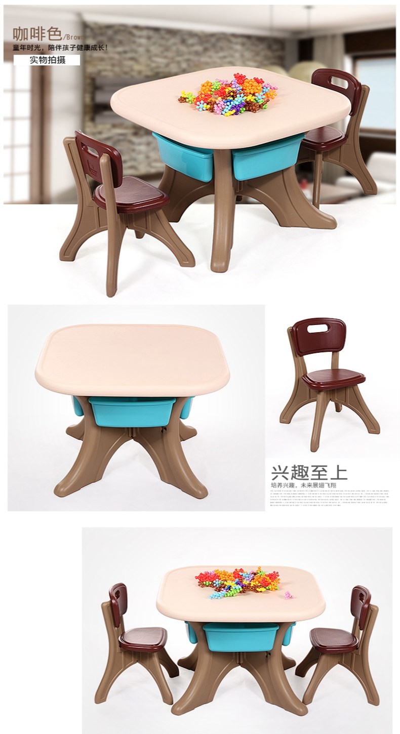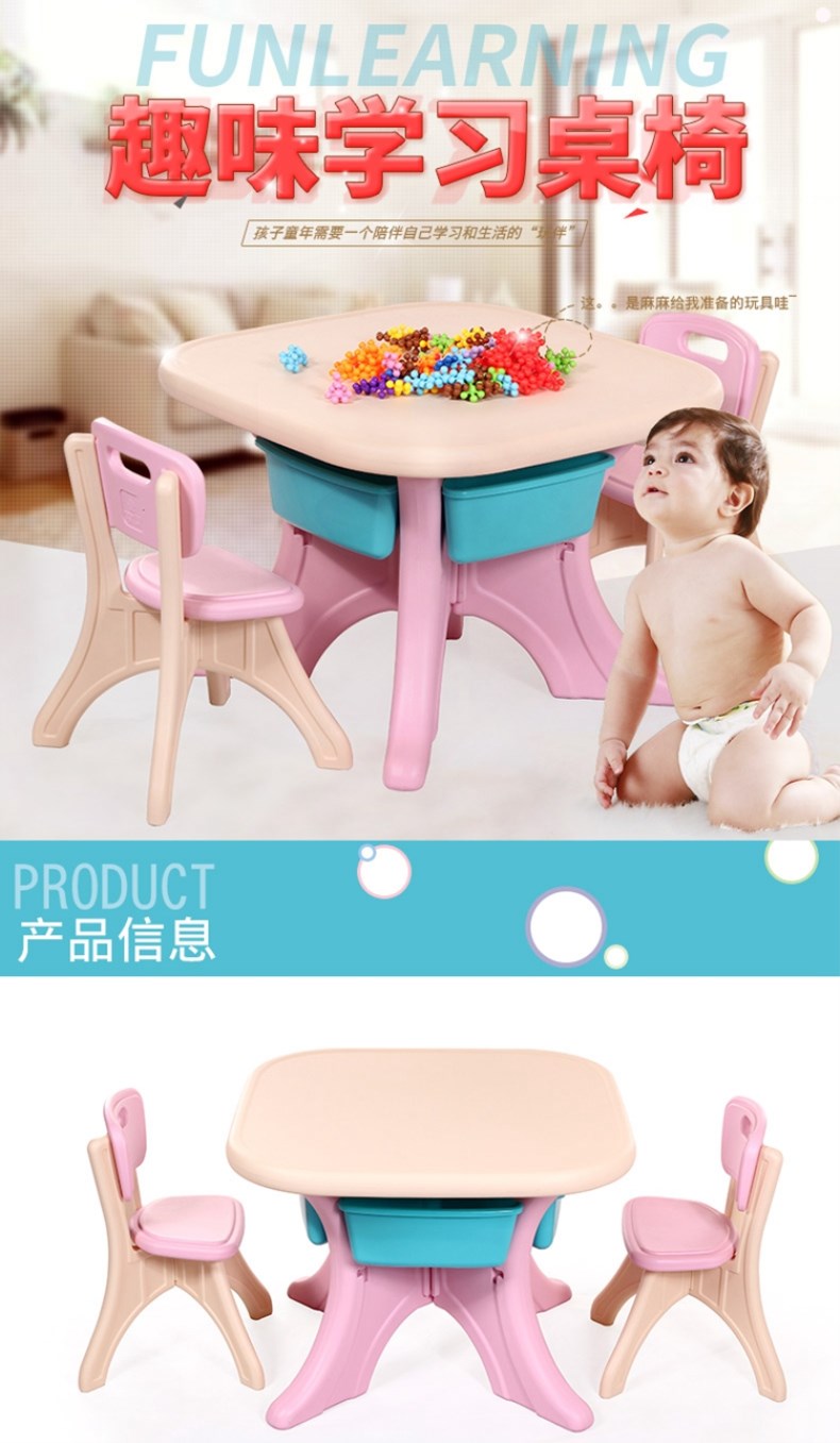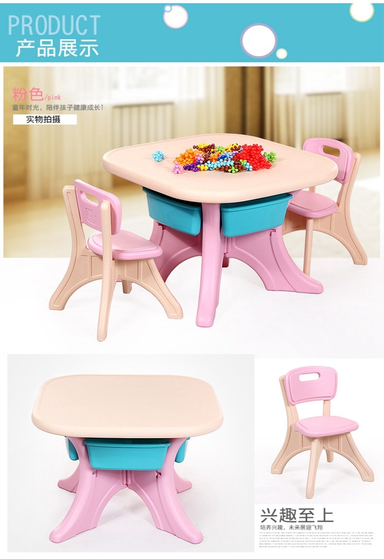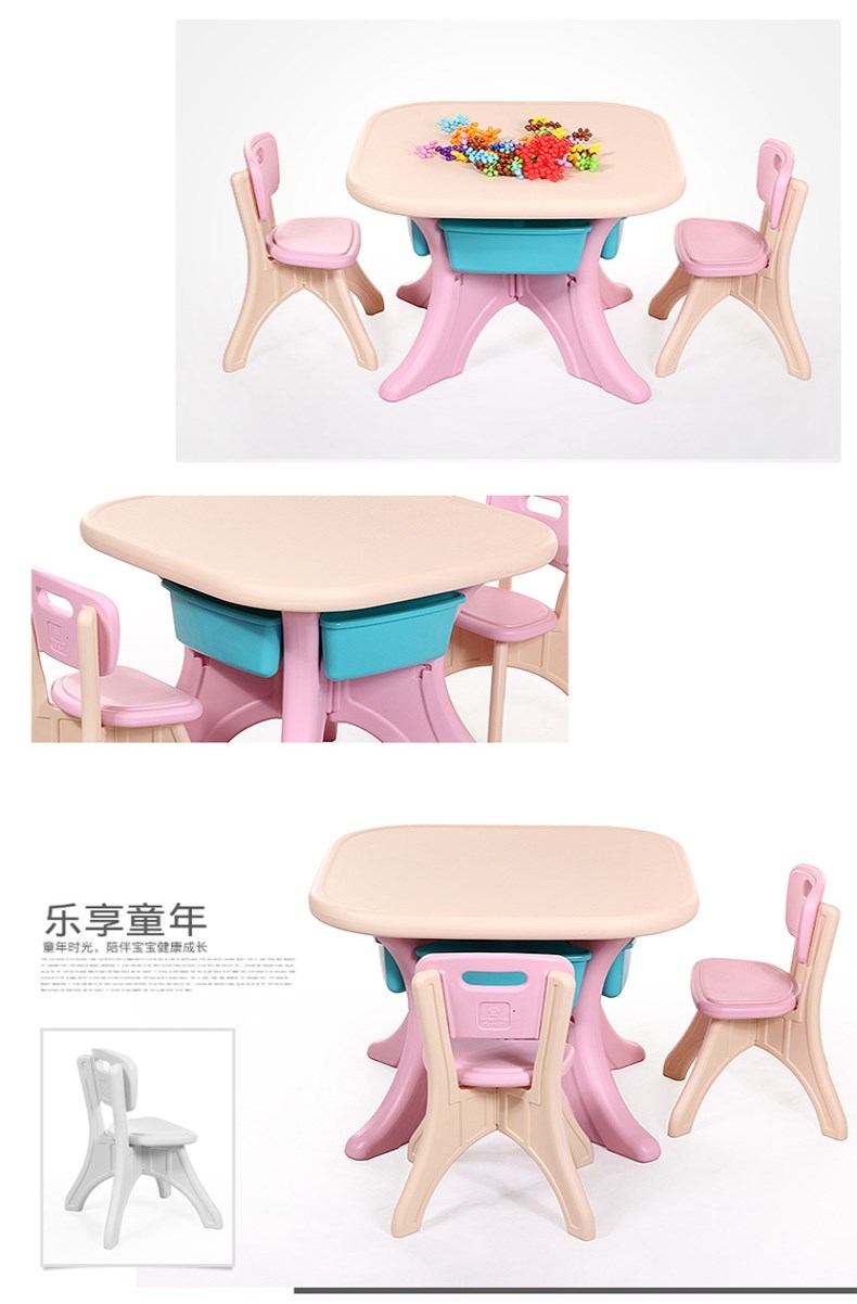 哈比树(HOBBY TREE)韩版儿童桌椅套装塑料幼儿园四方小桌子宝