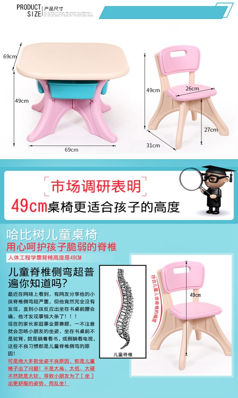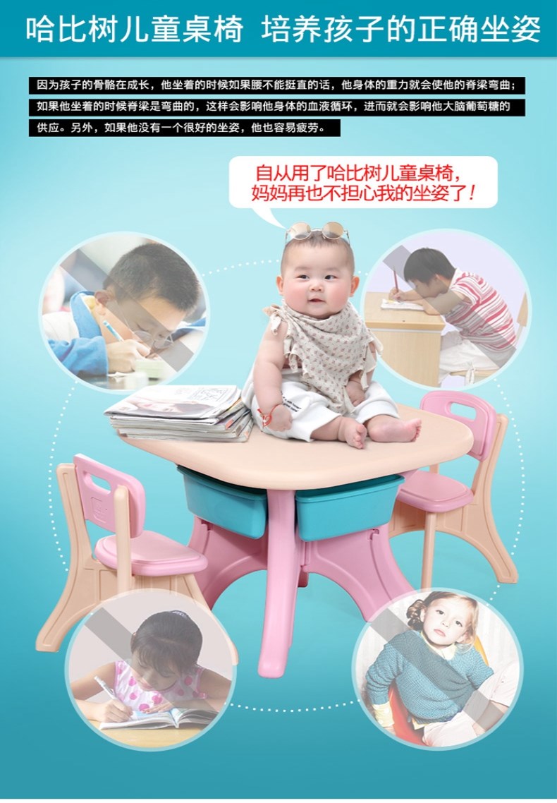 商品名称:哈比树(HOBBY TREE)韩版儿童桌椅套装塑料幼儿园四方小桌子宝