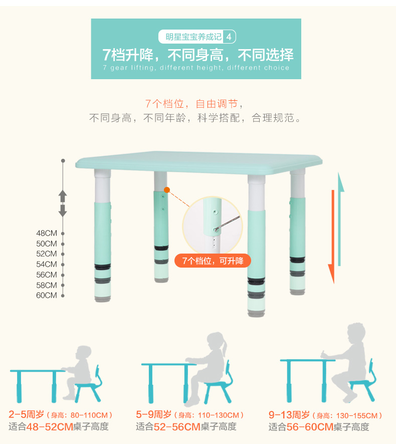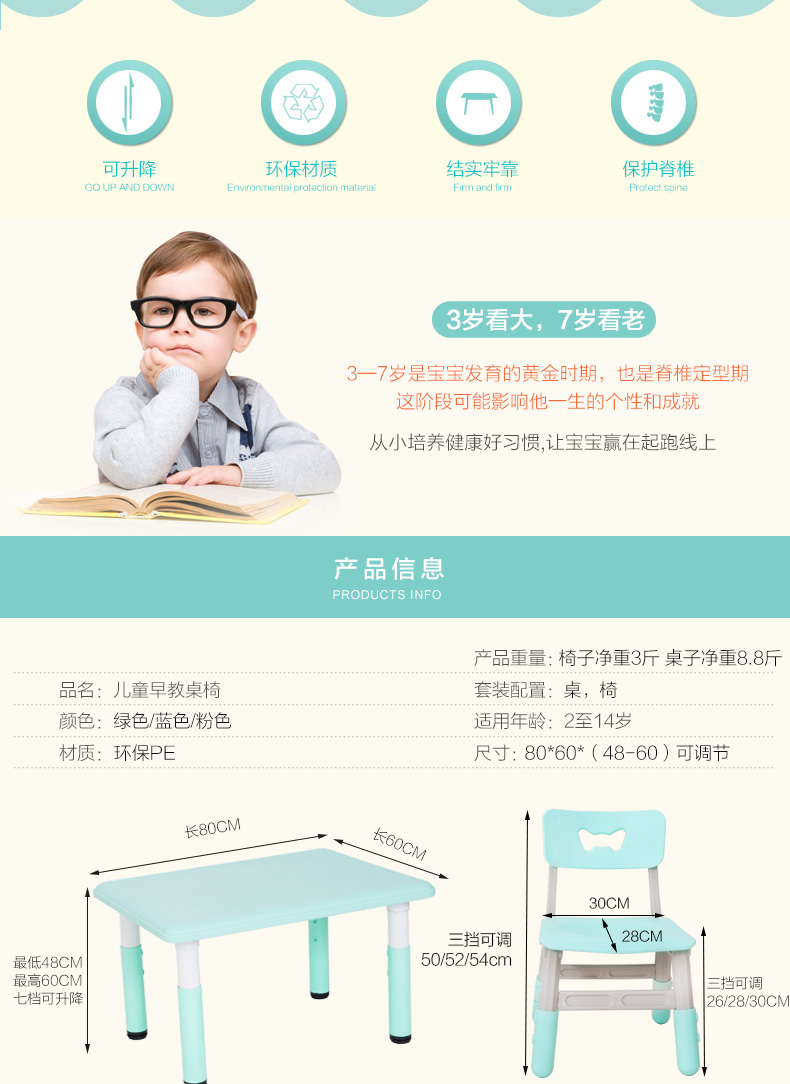 商品名称:卡皮儿童桌椅套装塑料幼儿园四方桌小桌子小椅子宝宝学习吃饭桌