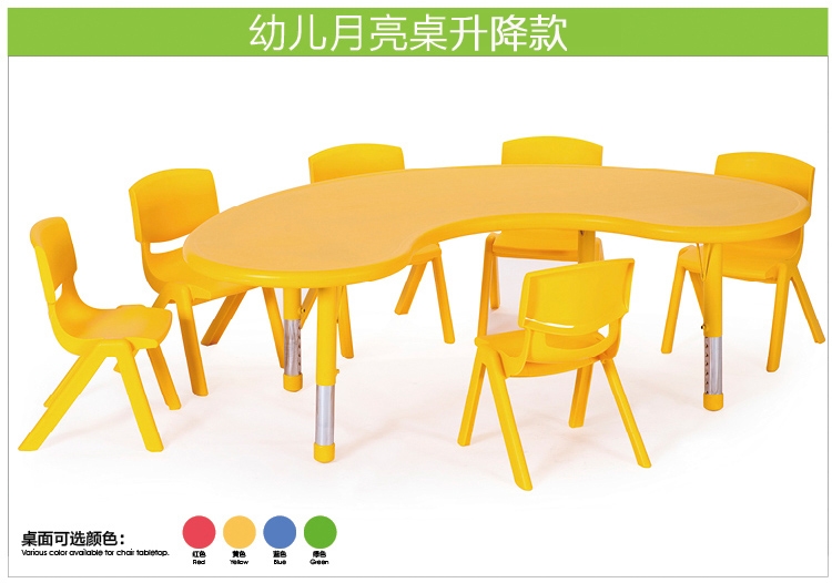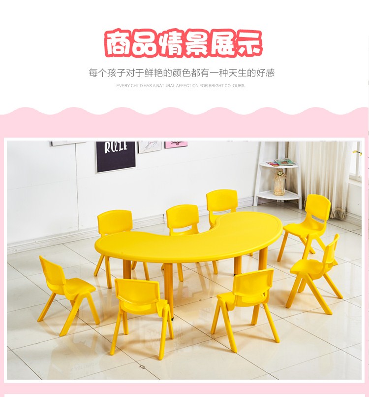 商品名称:幼儿园月亮桌子塑料加厚桌椅套装儿童宝宝学习桌早教中心升降餐桌