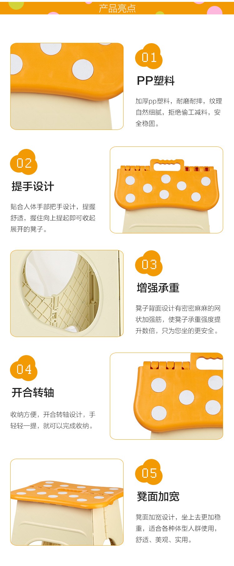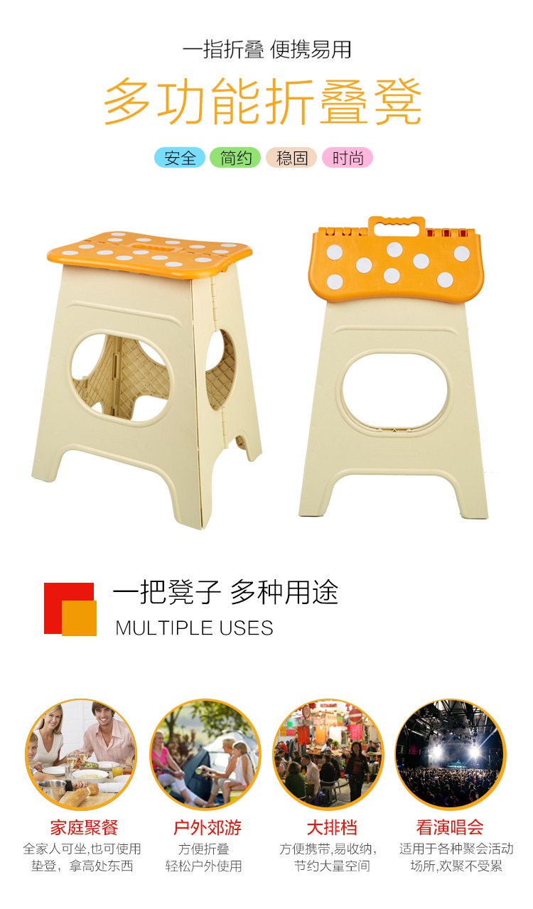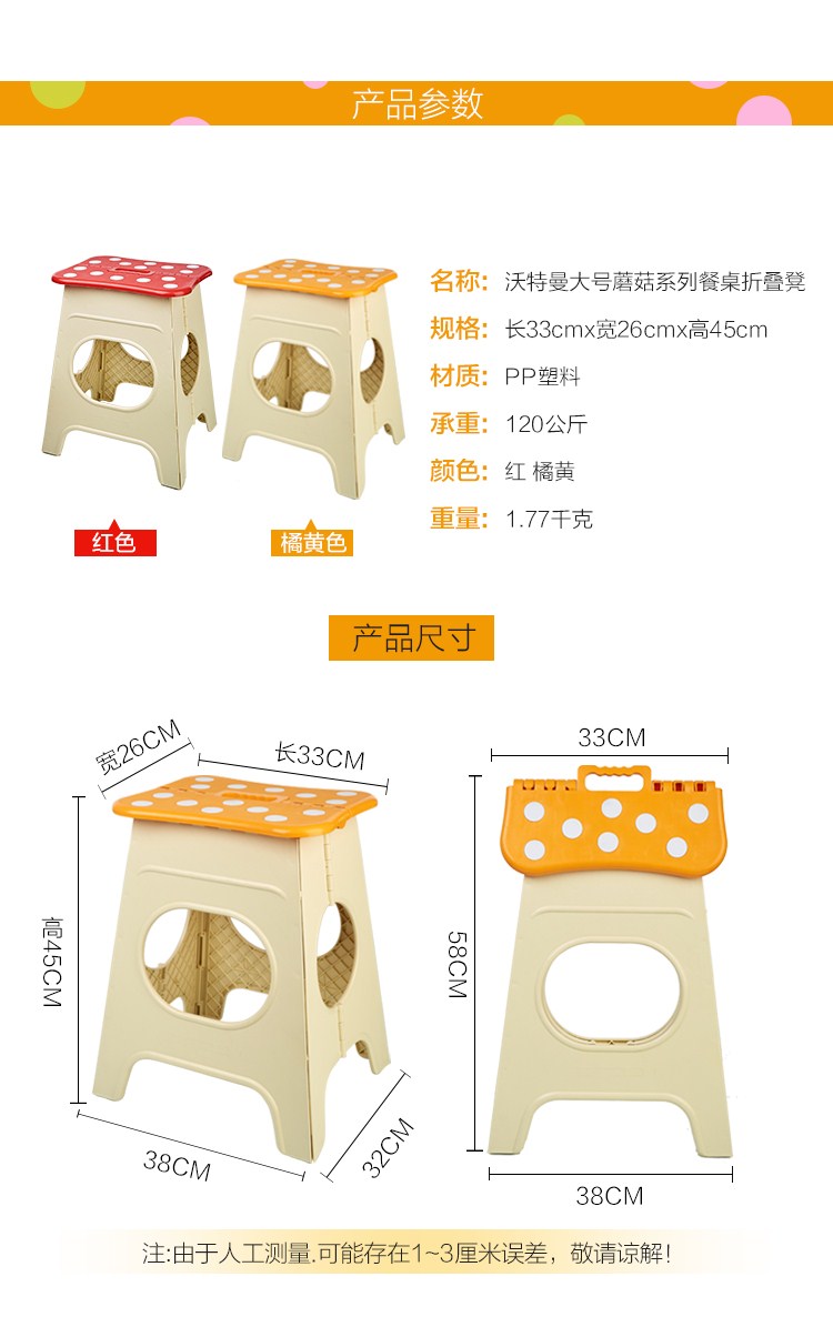 商品名称:沃特曼WhotMan 折叠椅加高加厚塑料餐桌凳便携式防滑折叠凳WD2932
