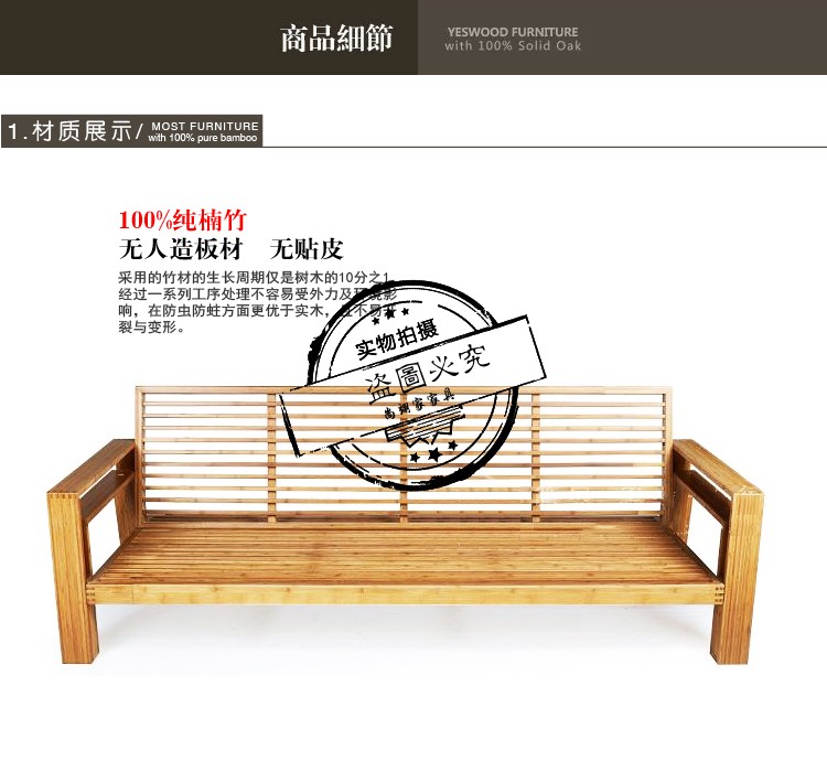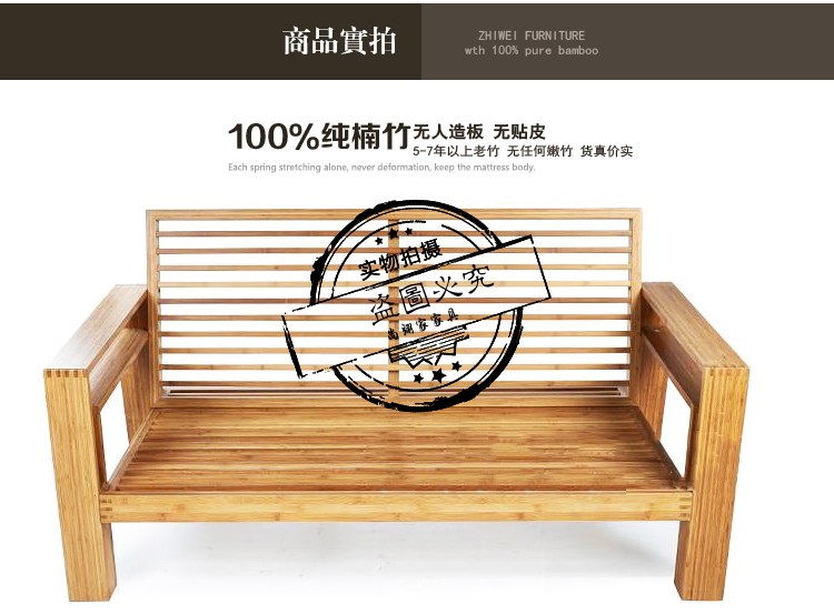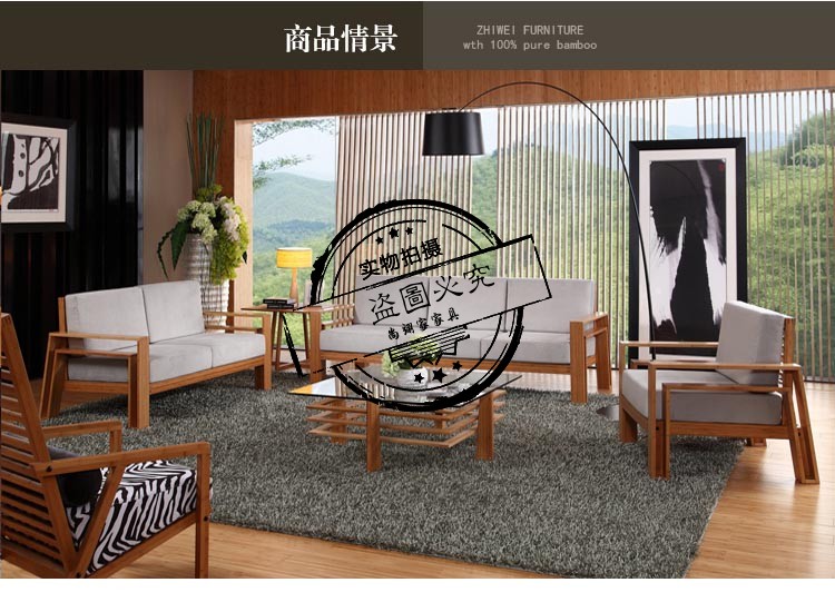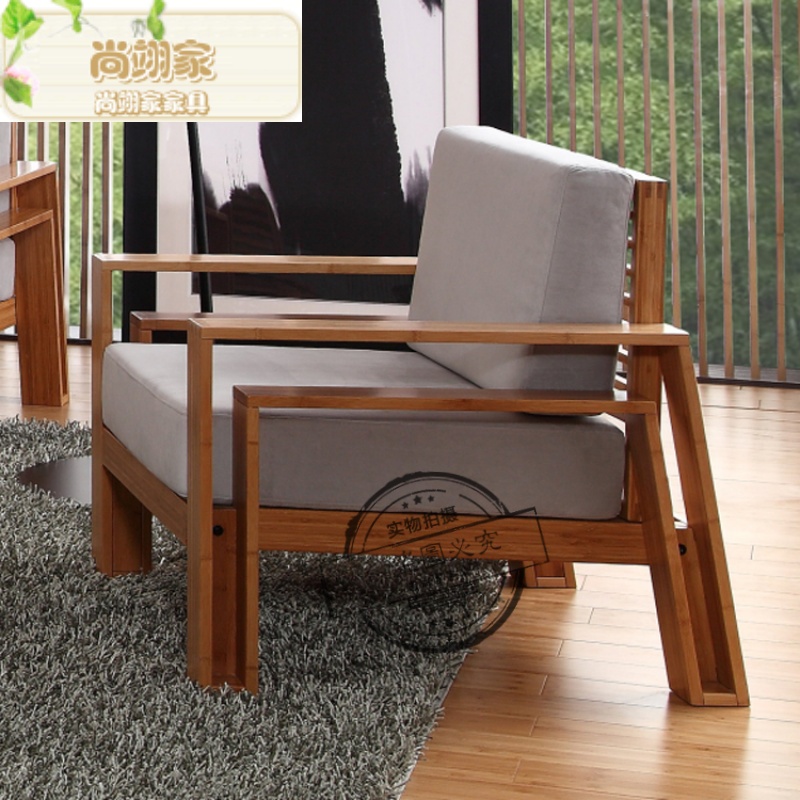 商品名称:尚翊家 欧式客厅办公竹制沙发真皮沙发单人三人实木沙发组合竹家