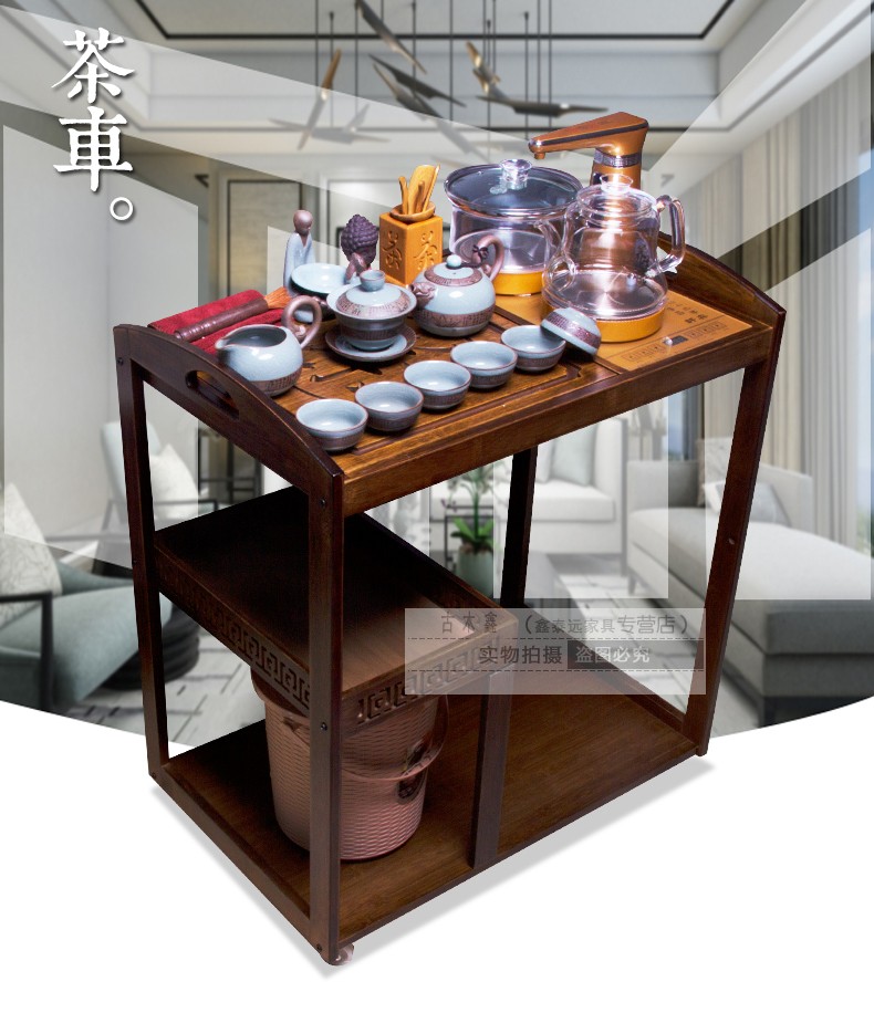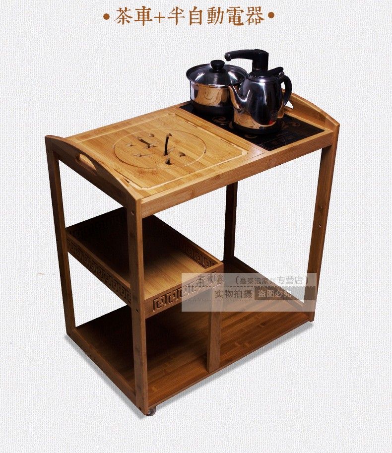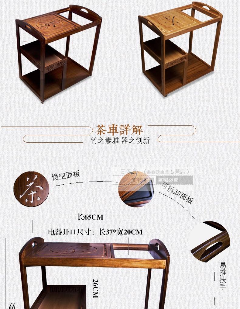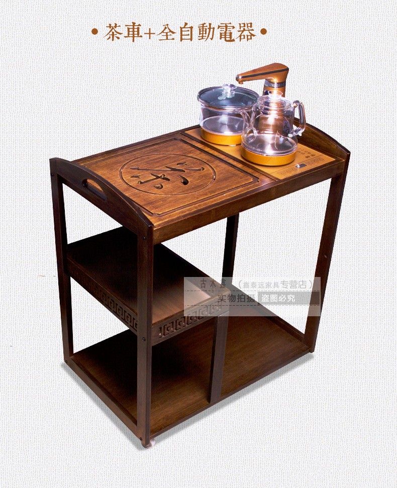 商品名称:可移动实木茶桌装饰沙发边角几带轮竹制实木新品自动木雕茶车一体