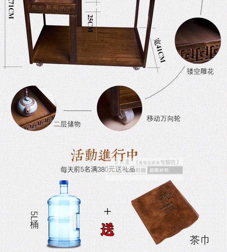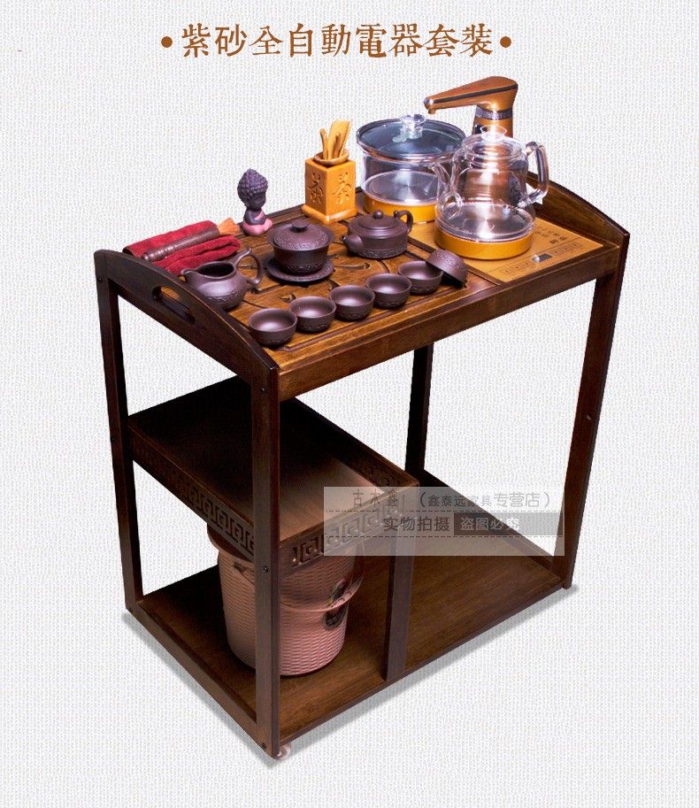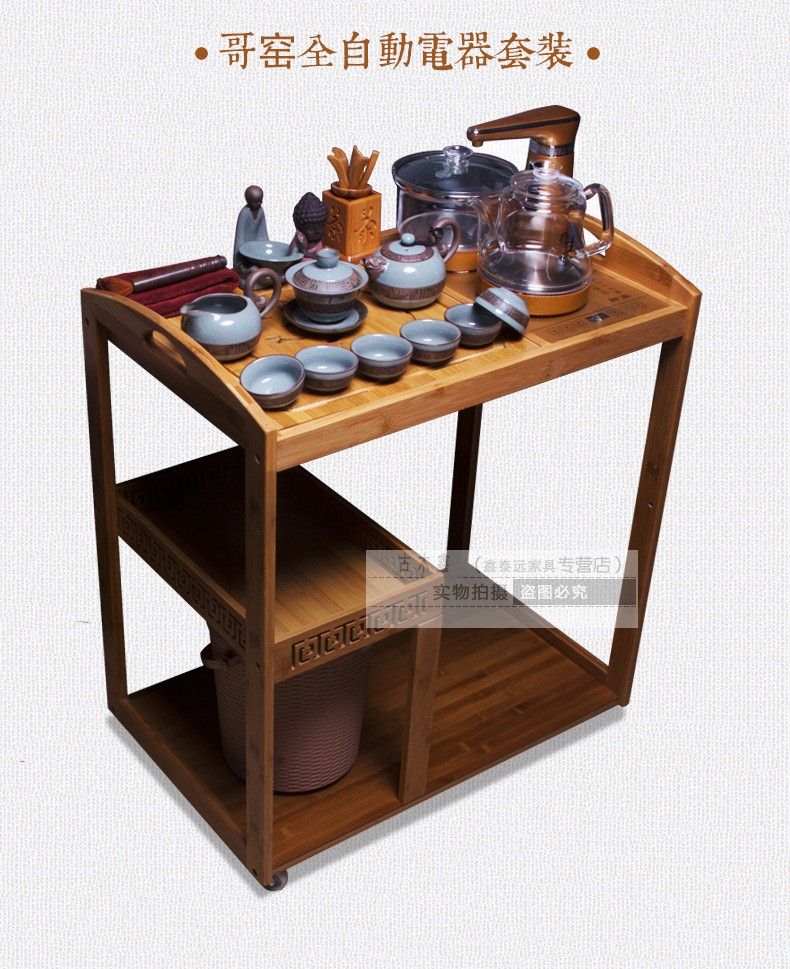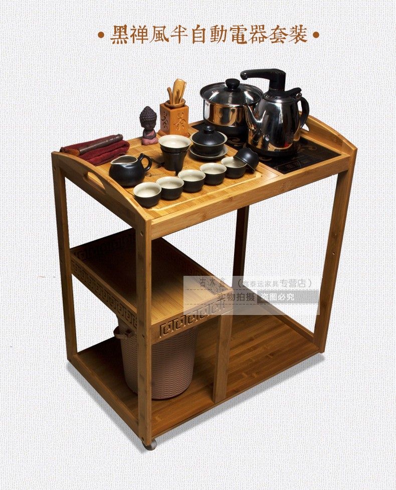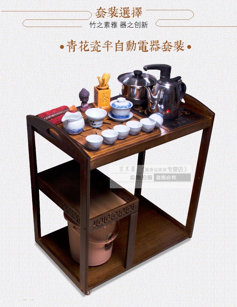 商品名称:可移动实木茶桌装饰沙发边角几带轮竹制实木新品自动木雕茶车一体