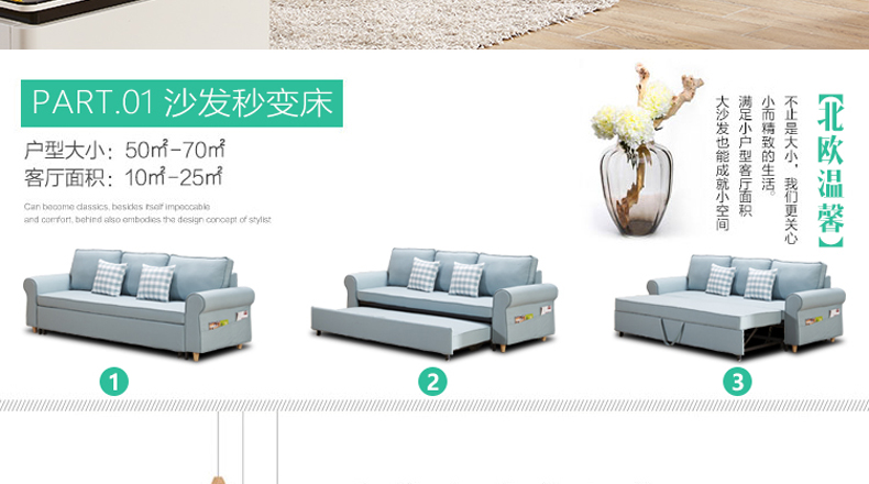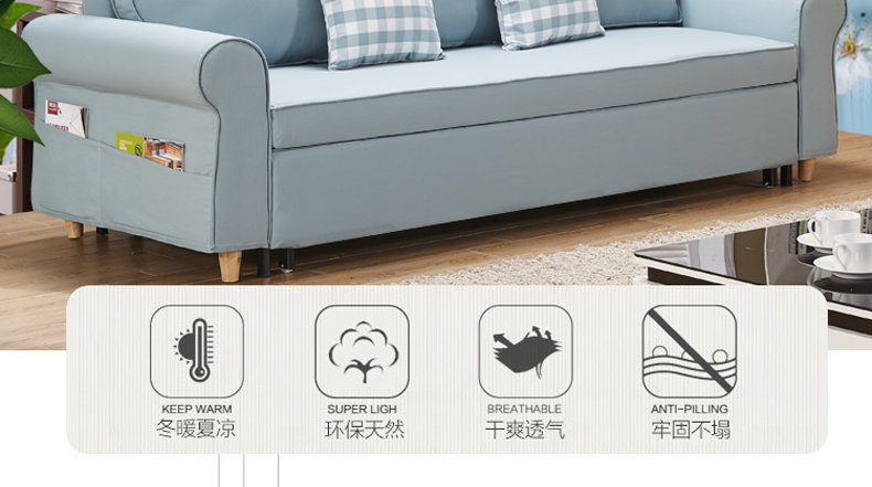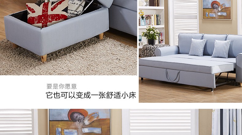 商品名称:如黛功能沙发可拆洗北欧布艺沙发床钢架结构多功能两用沙发小户型