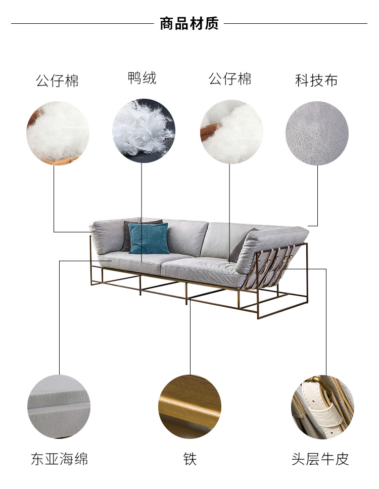 商品名称:Robot美式科技布沙发布艺羽绒时尚铁艺三人位小户型客厅钢架沙发