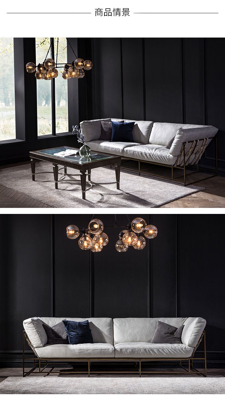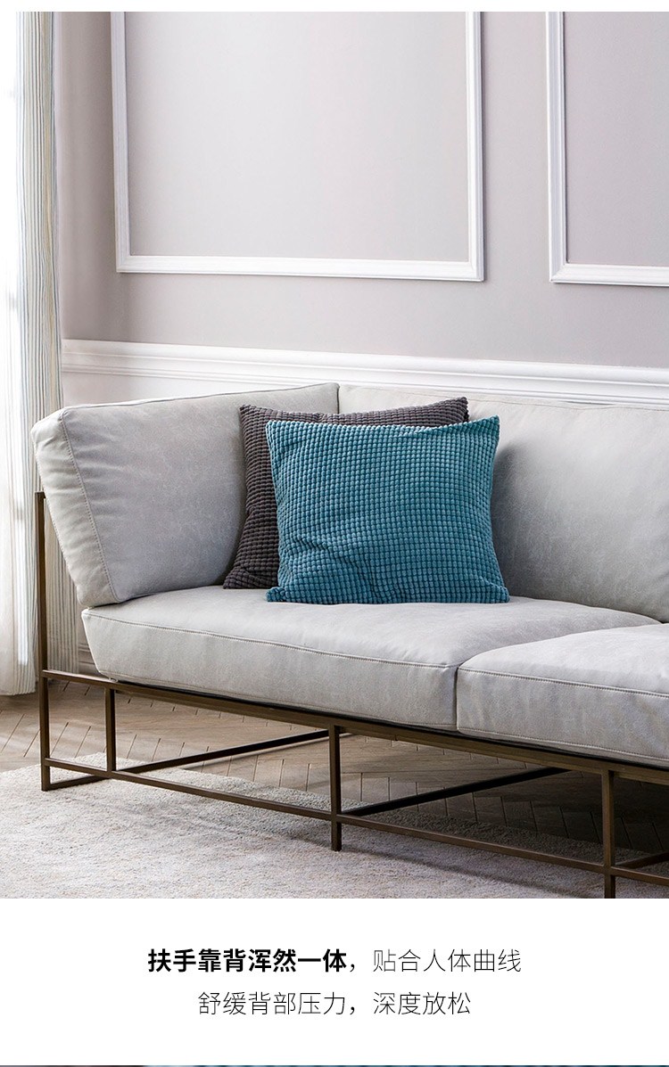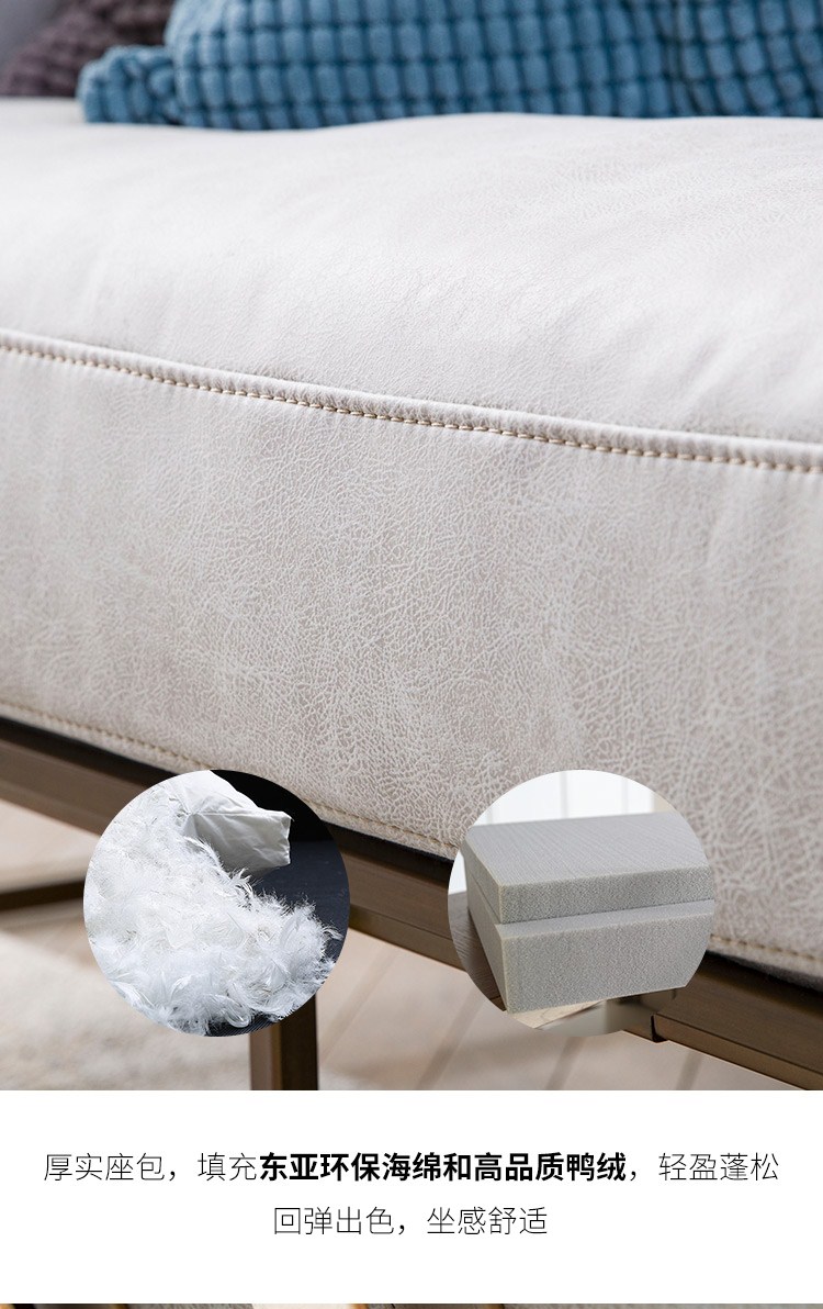 Robot美式科技布沙发布艺羽绒时尚铁艺三人位小户型客厅钢架沙发