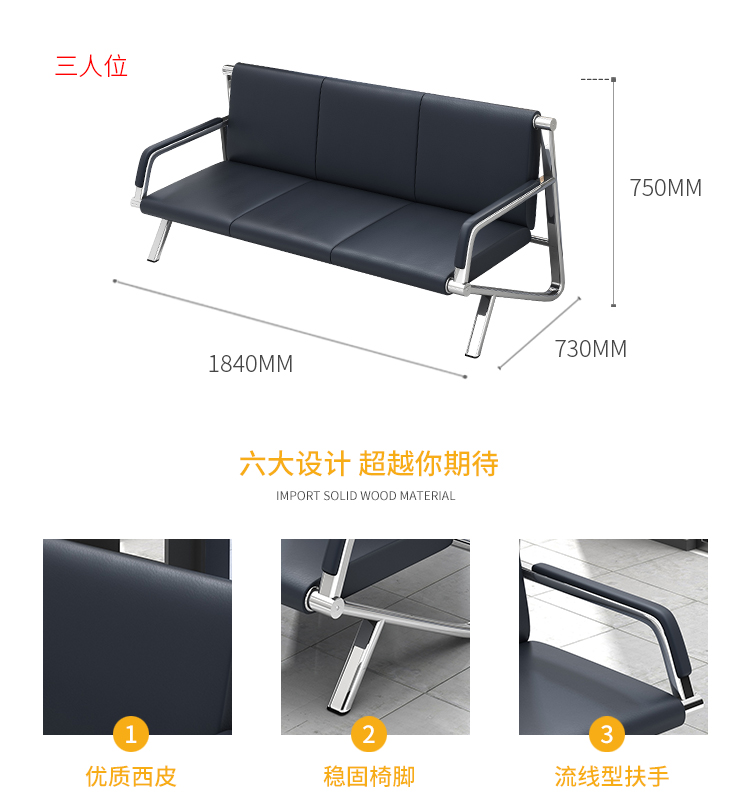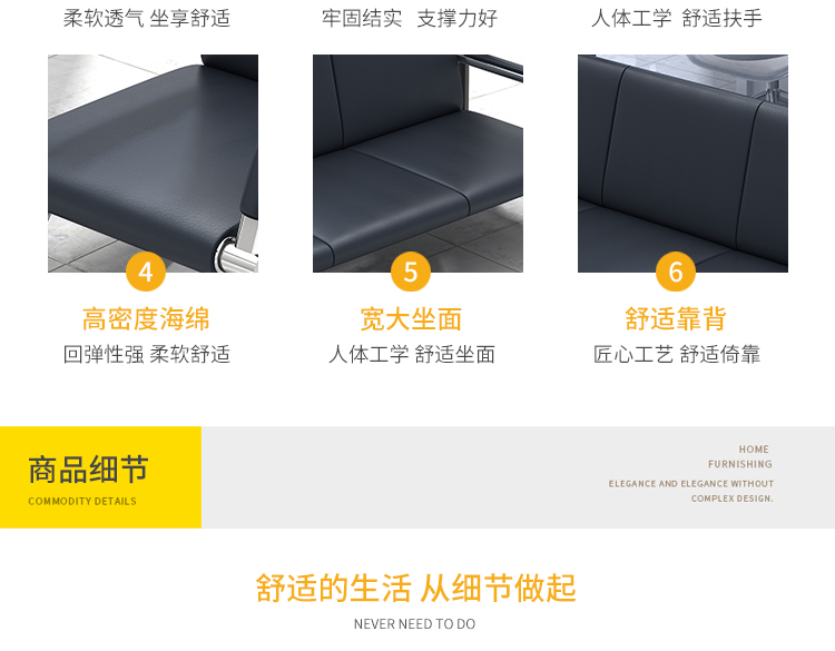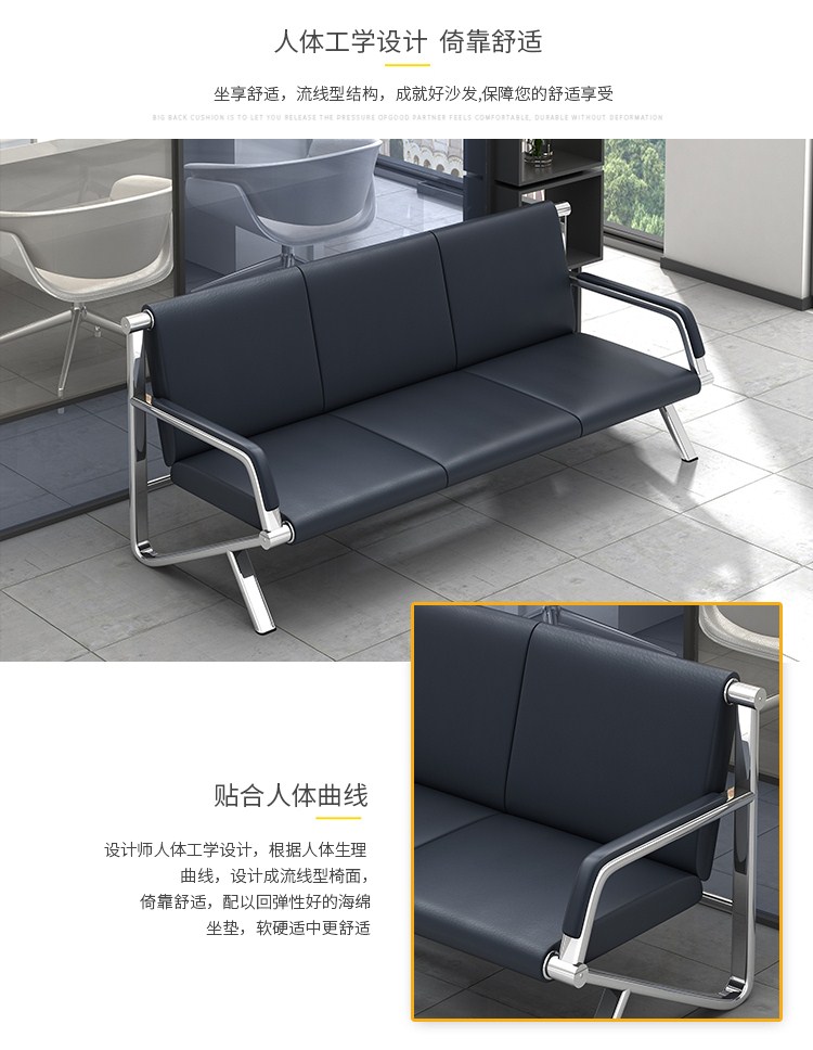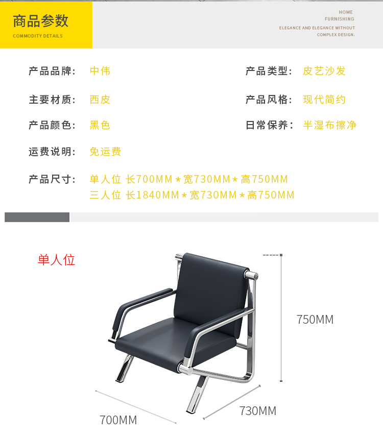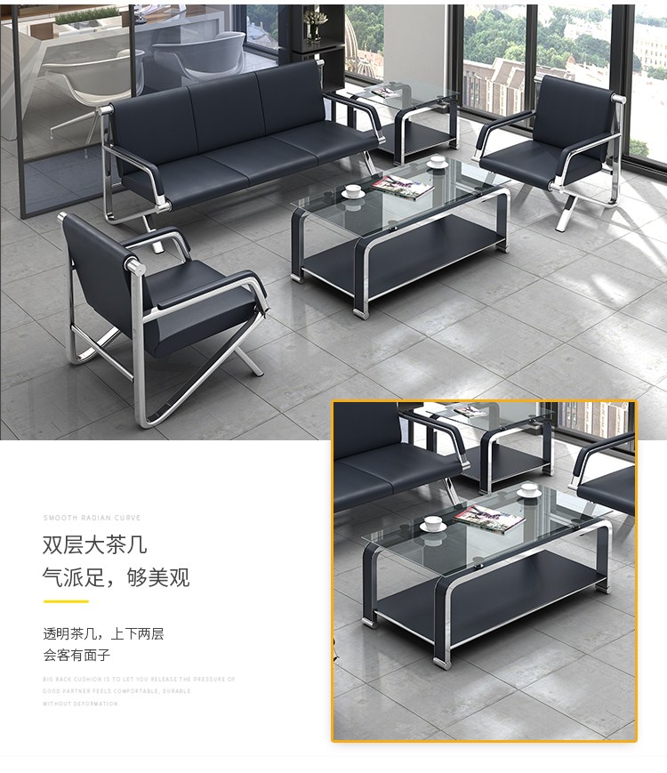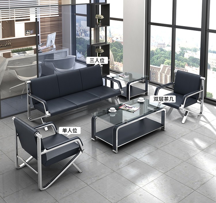 商品名称:中伟办公沙发现代简约钢架沙发接待沙发商务沙发 三人位沙发