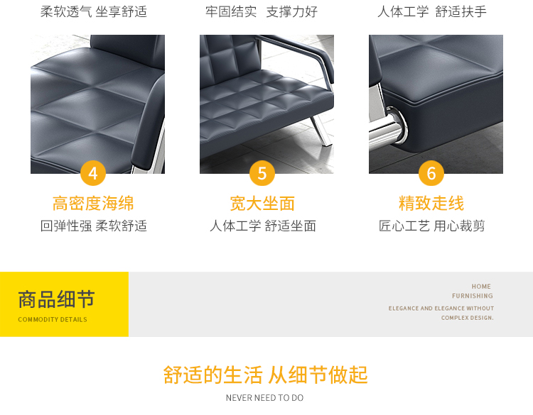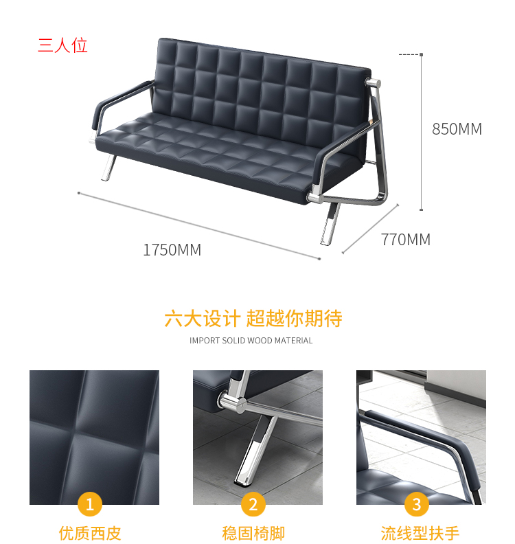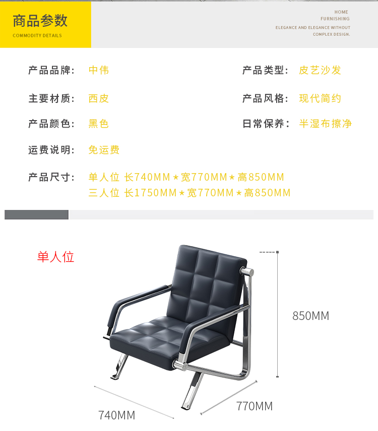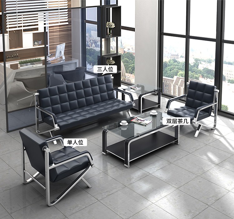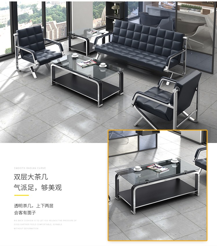 商品名称:中伟办公沙发茶几组合现代简约钢架沙发商务沙发接待沙发3+1+1+大