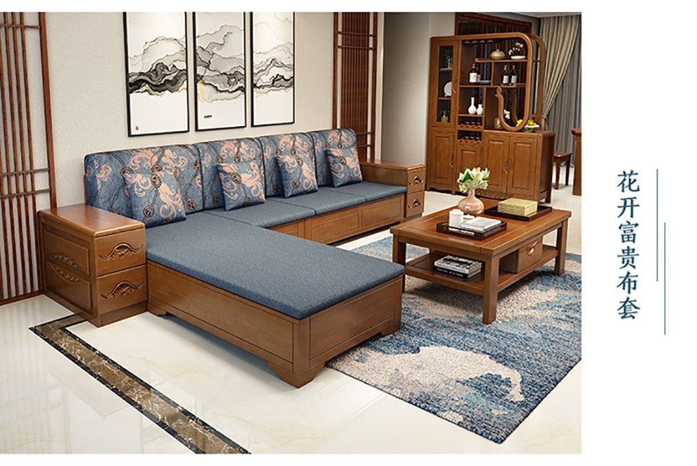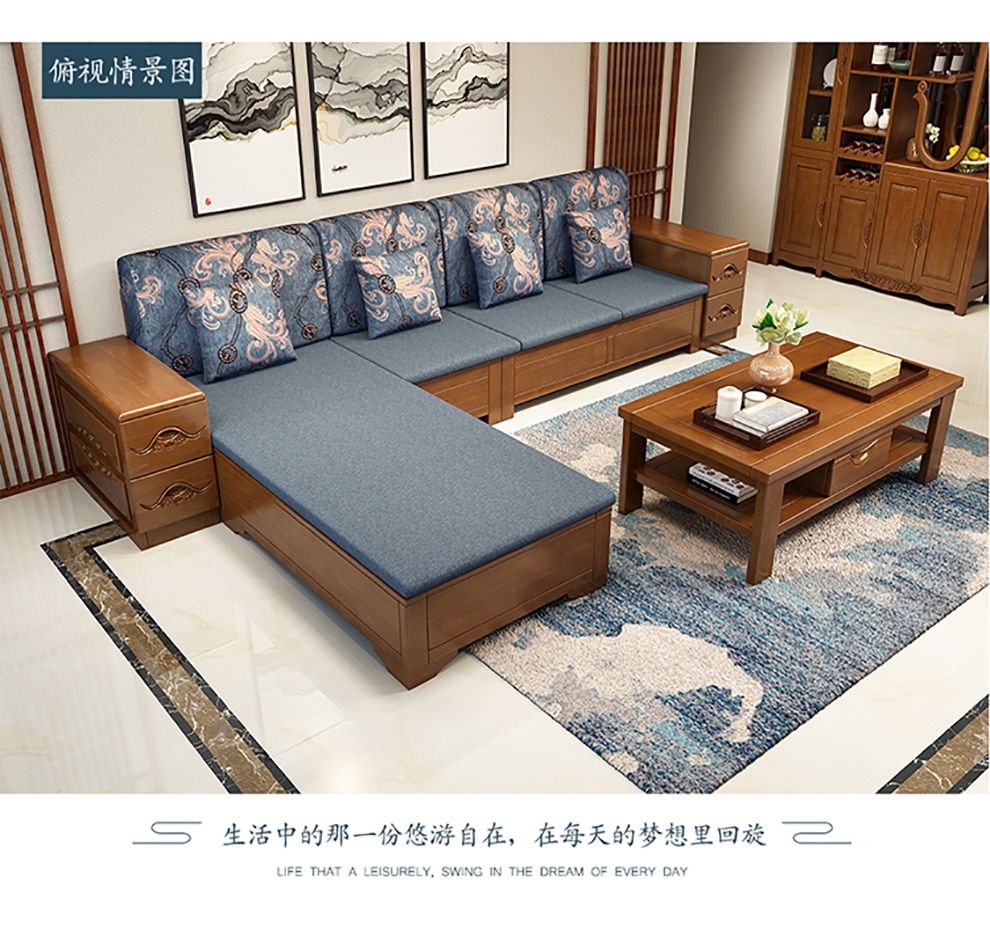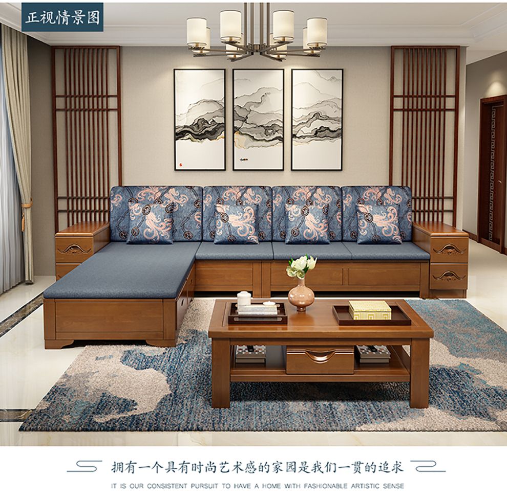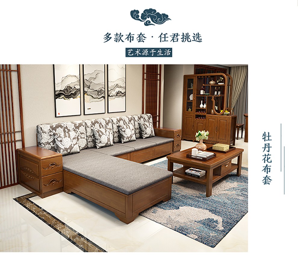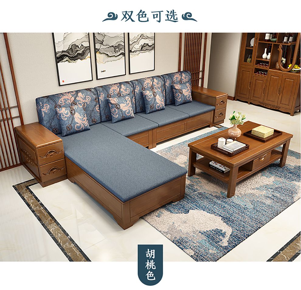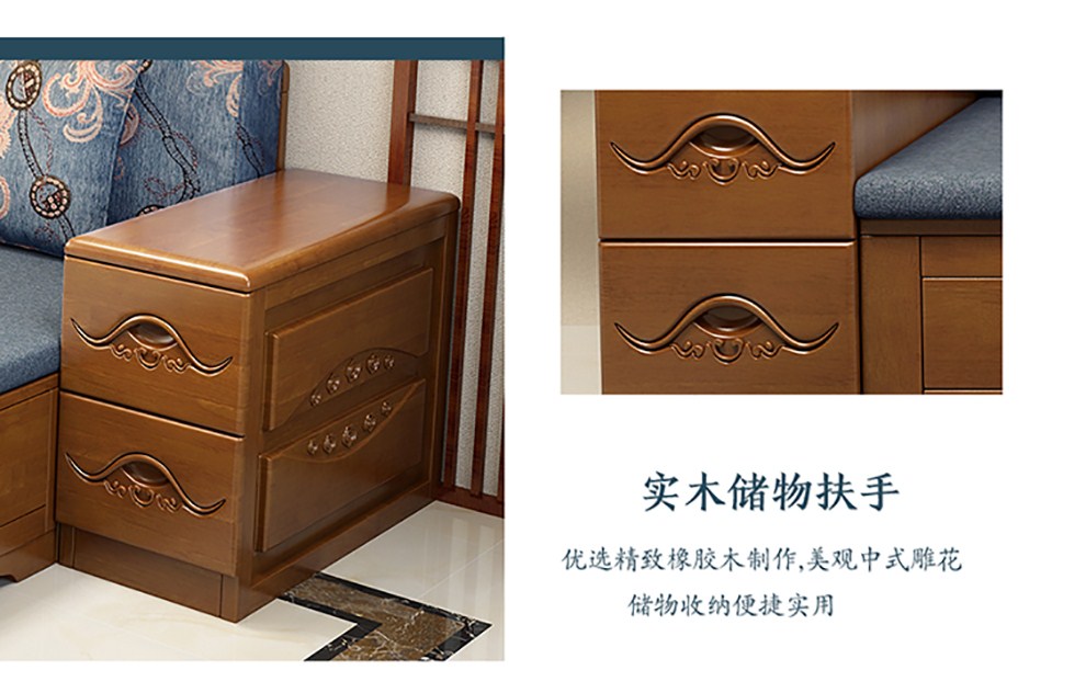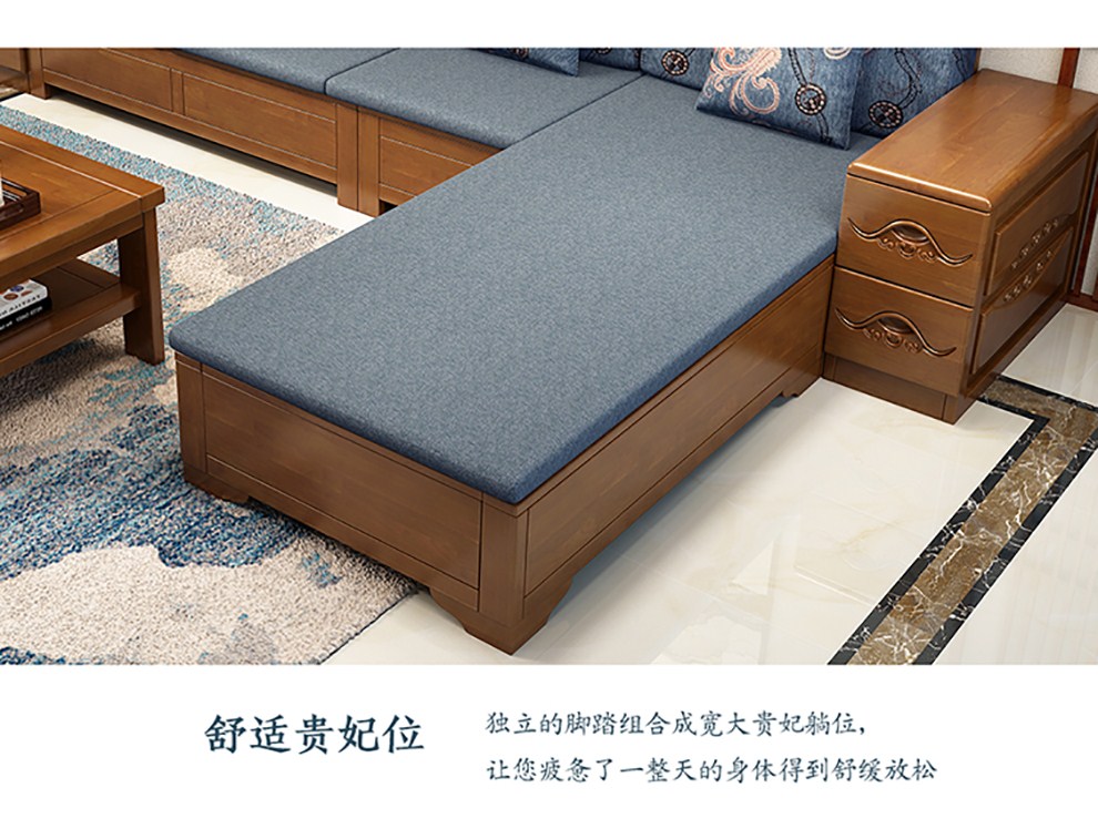 商品名称:千禧盛世实木沙发储物冬夏两用沙发组合贵妃带转角中式木质沙发