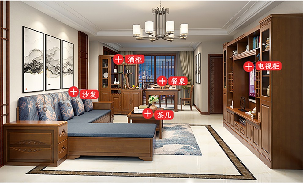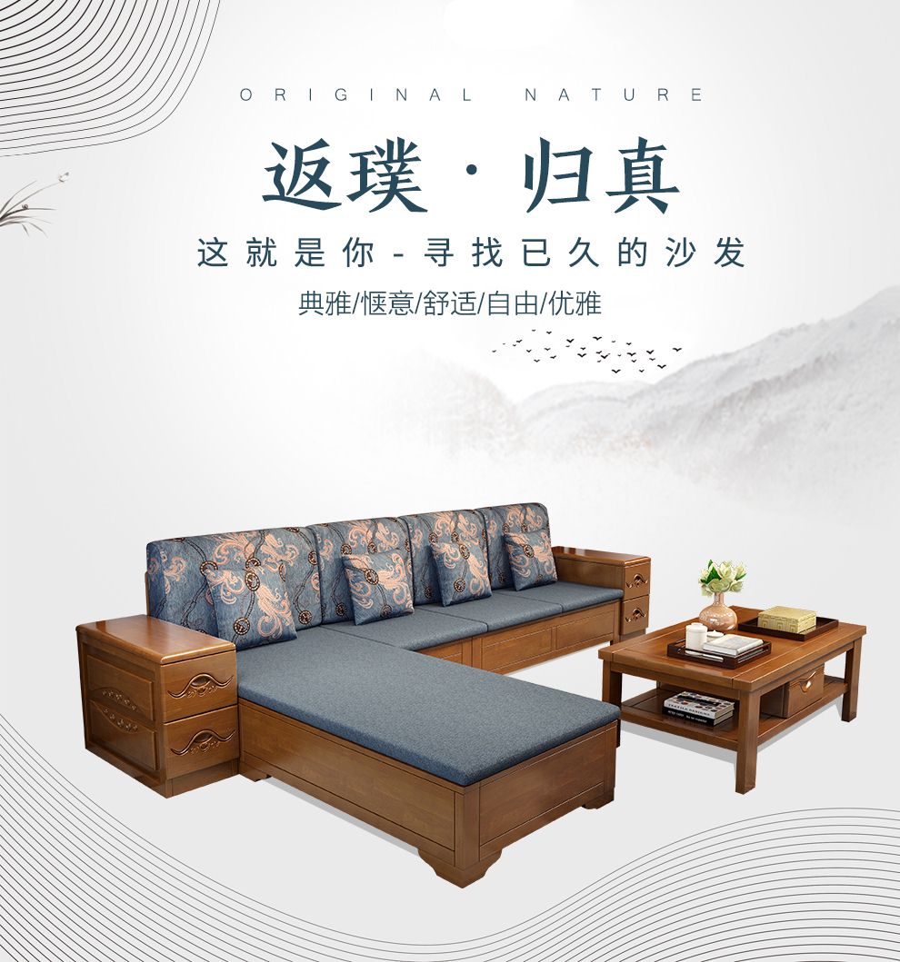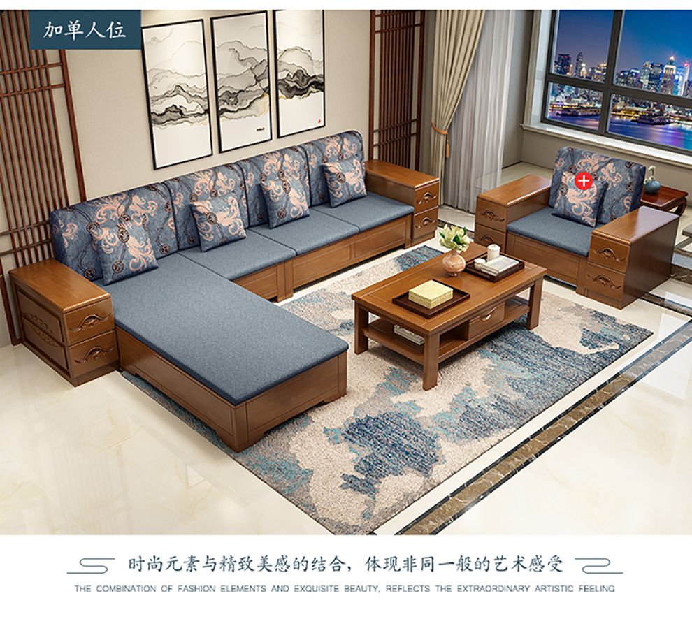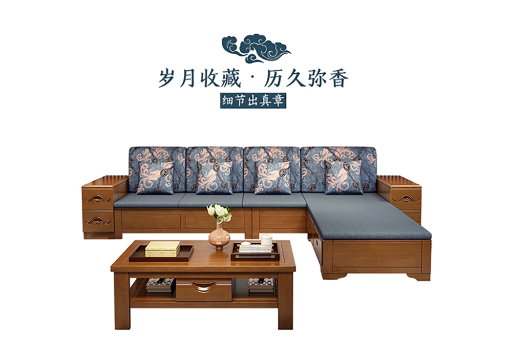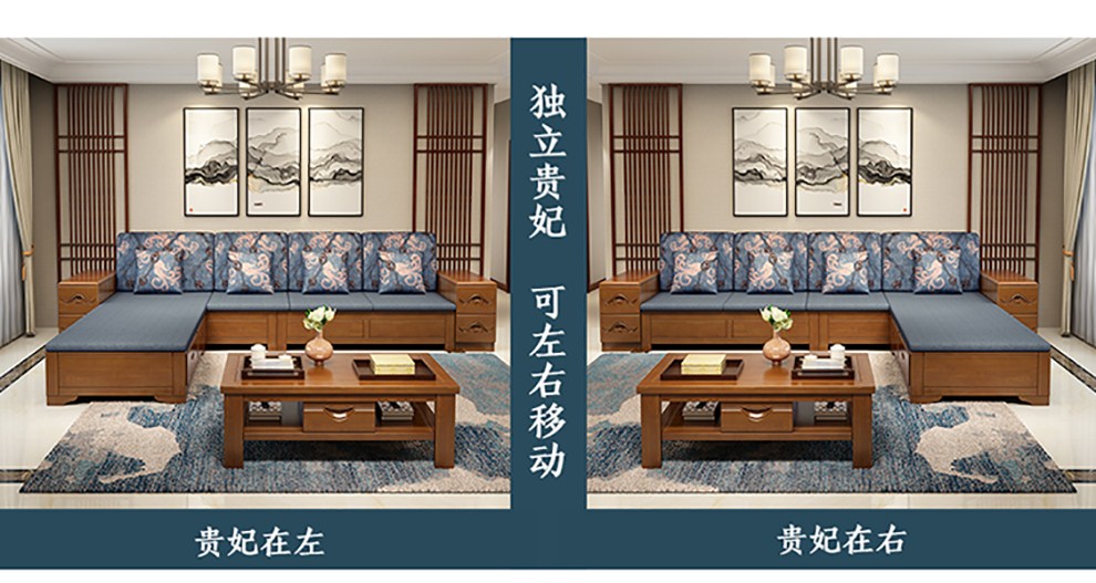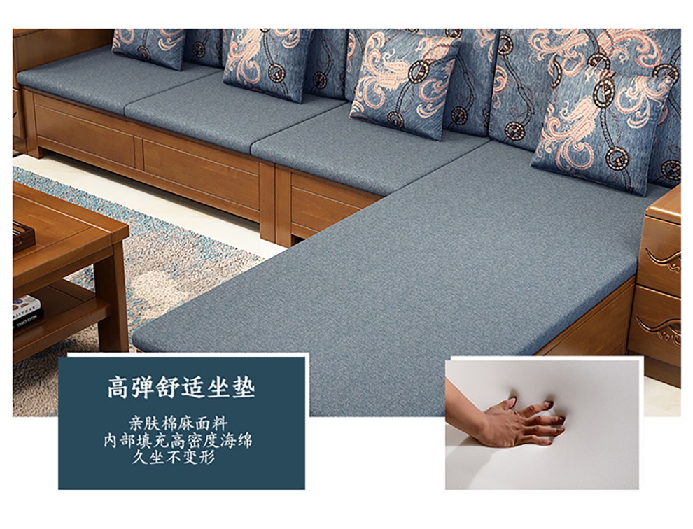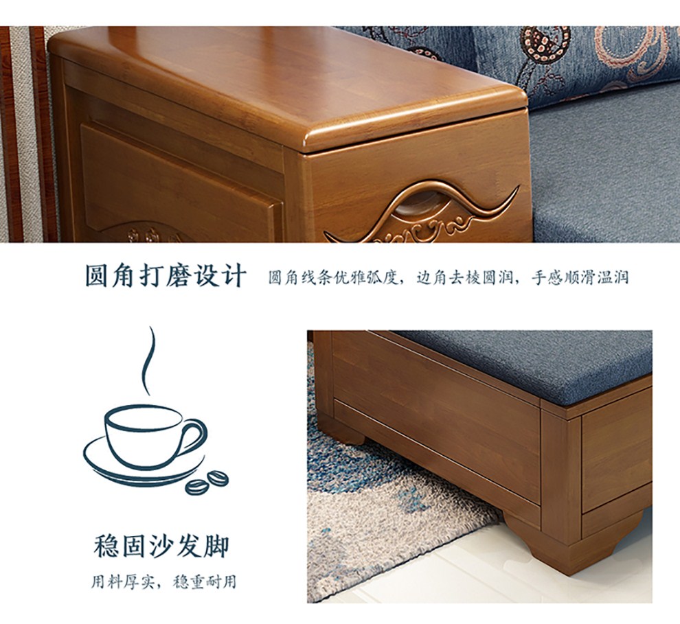商品名称:千禧盛世实木沙发储物冬夏两用沙发组合贵妃带转角中式木质沙发