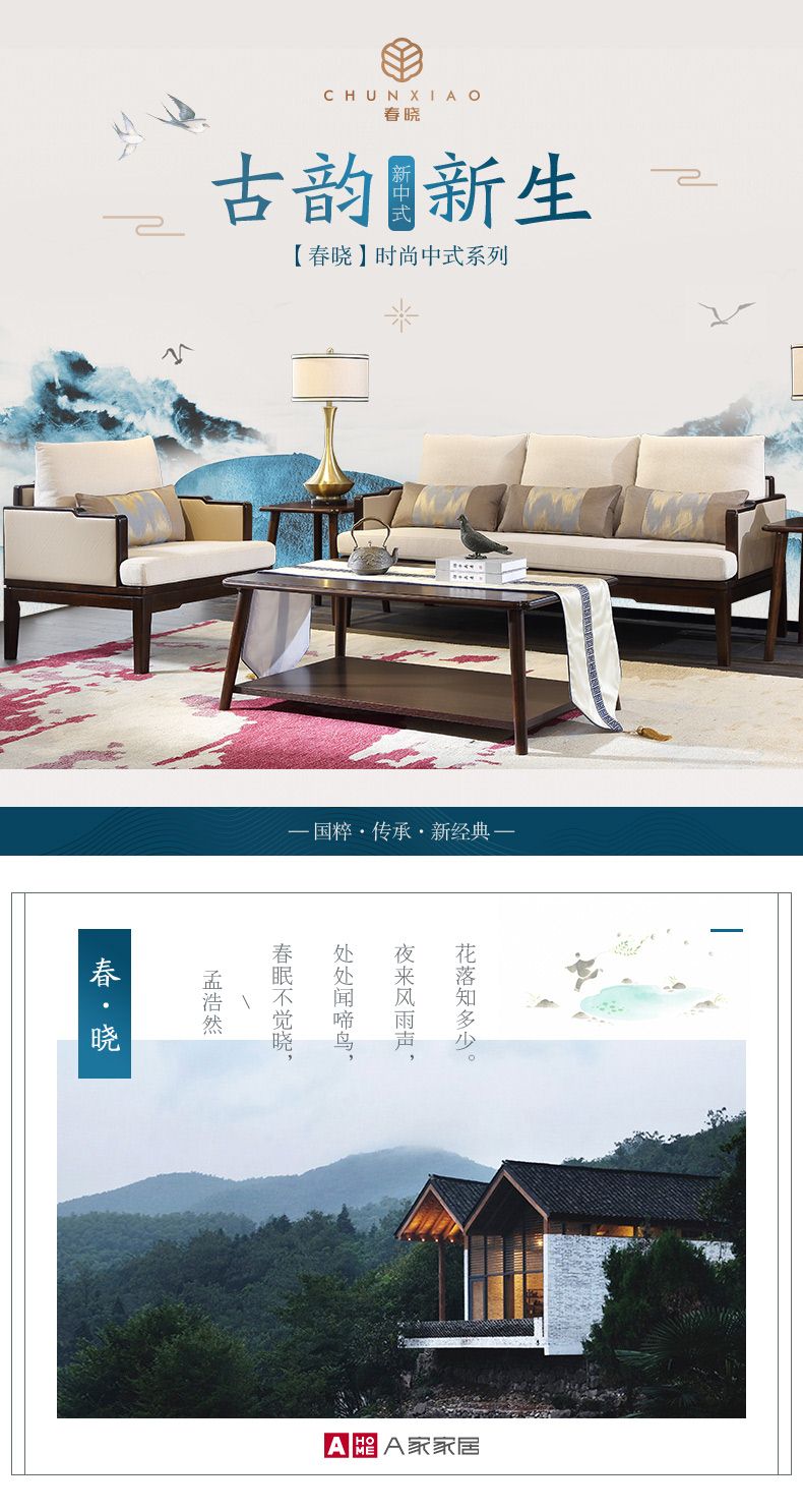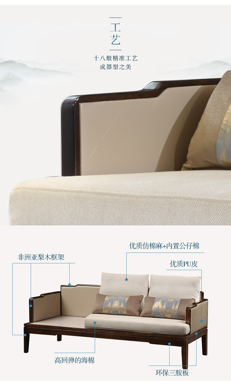 商品名称:A家 布艺沙发新中式实木沙发组合古韵时尚单人双人三人沙发客厅