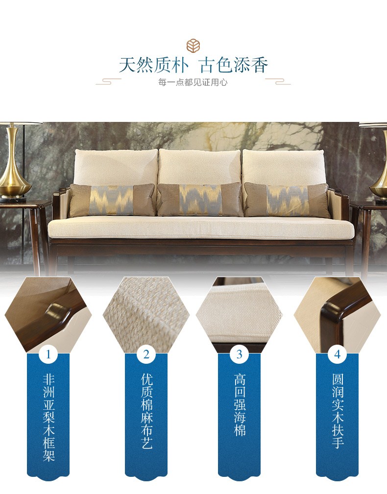 A家 布艺沙发新中式实木沙发组合古韵时尚单人双人三人沙发客厅