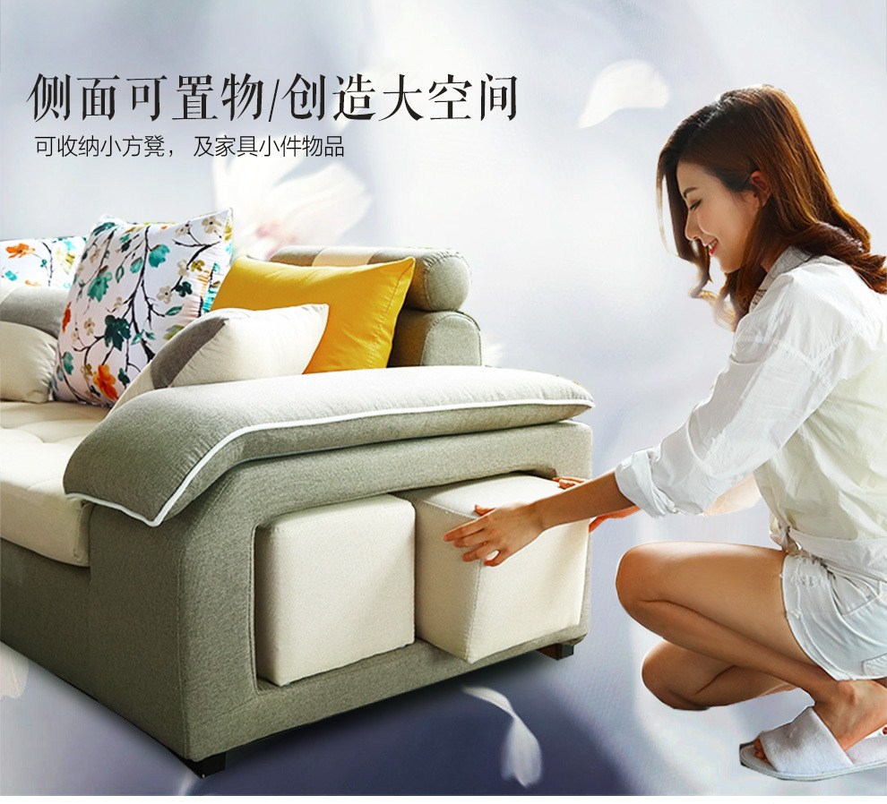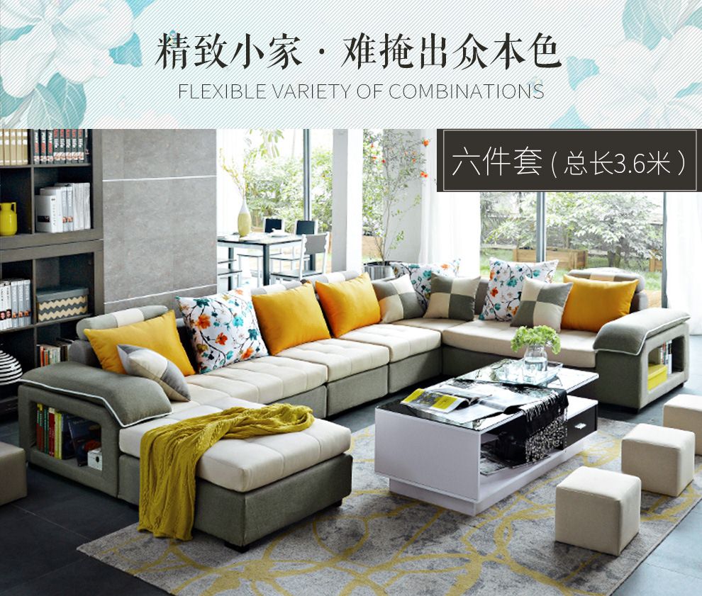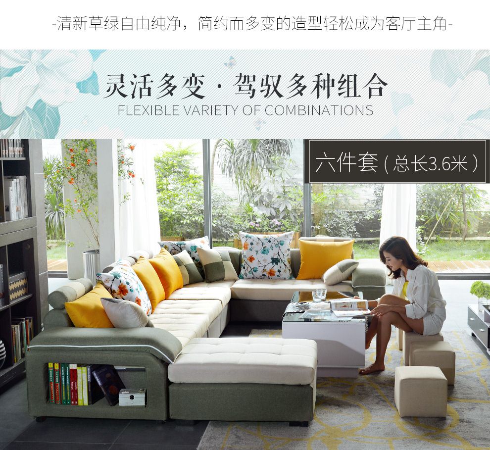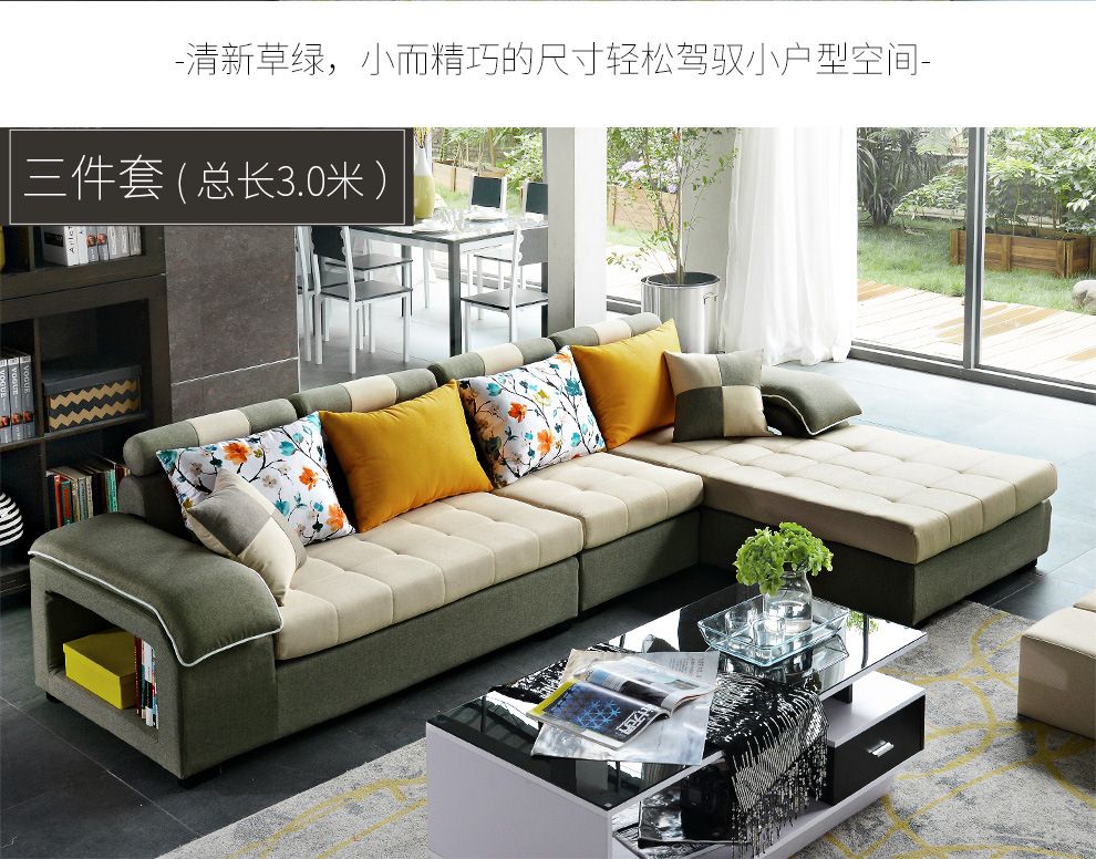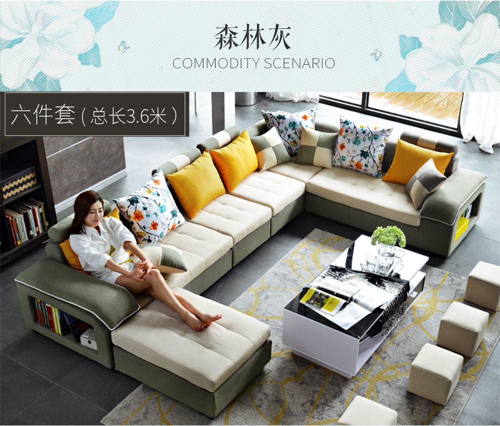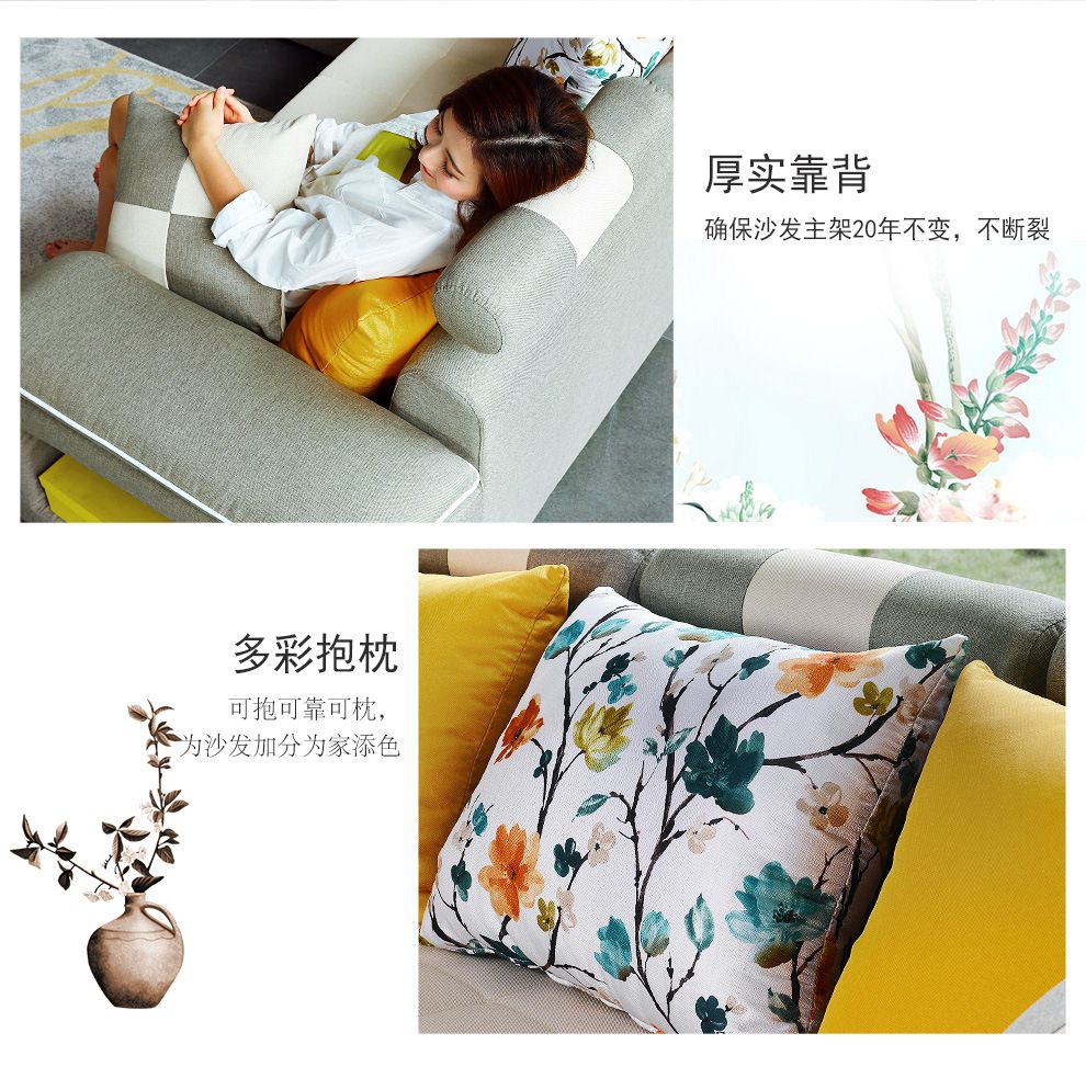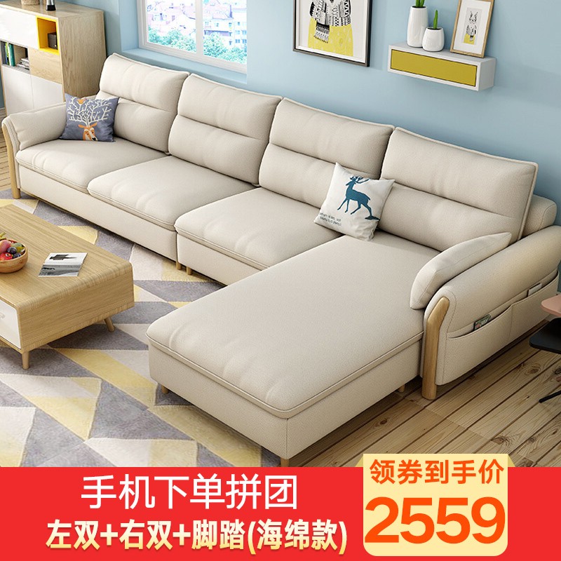 商品名称:中派 沙发 客厅可拆洗布艺沙发实木北欧沙发 海绵款左双+右双+脚