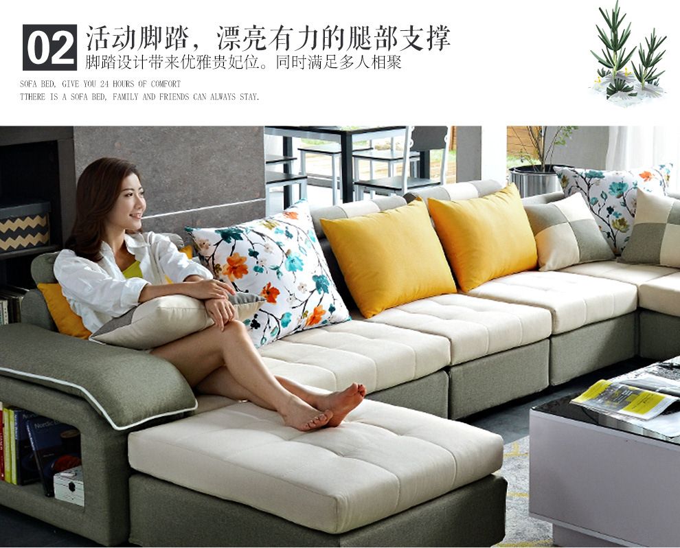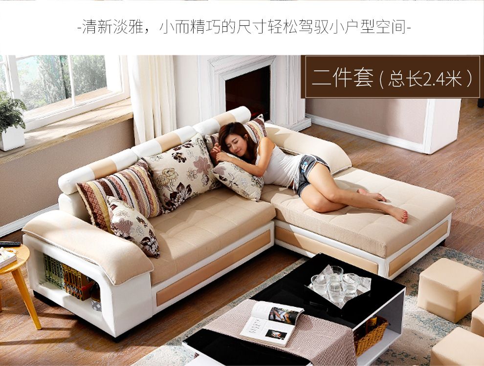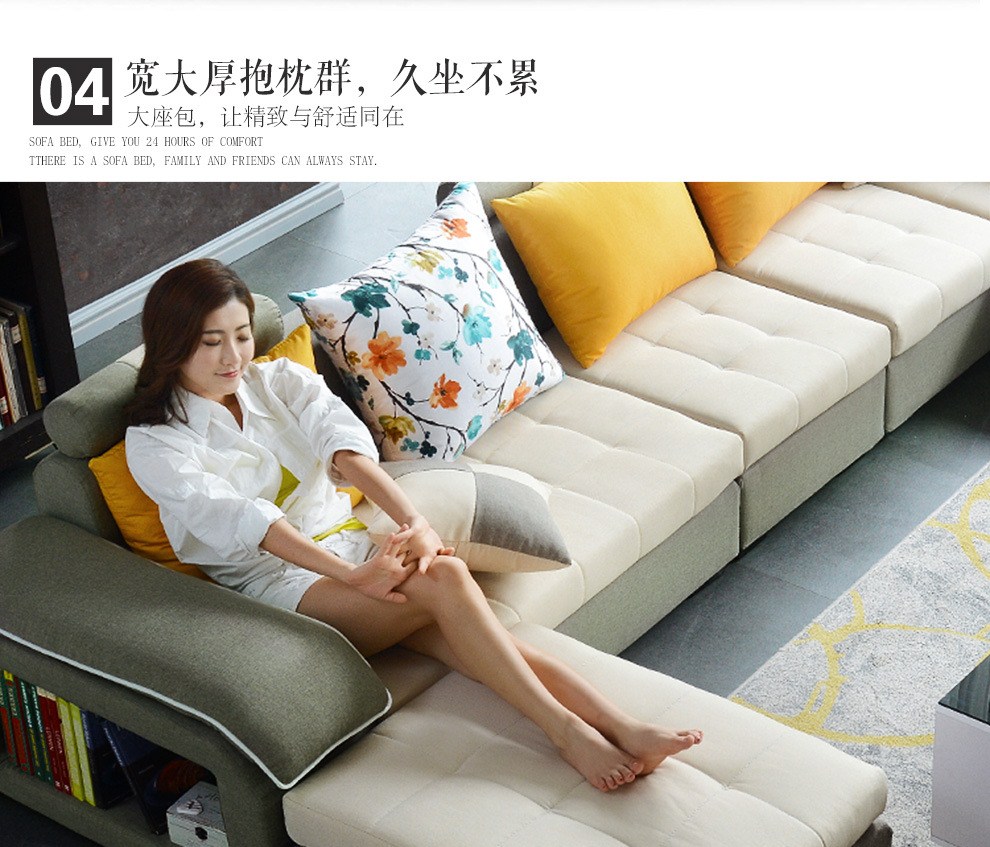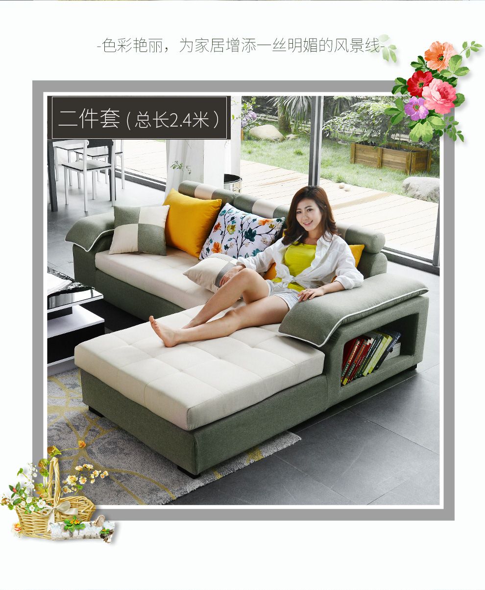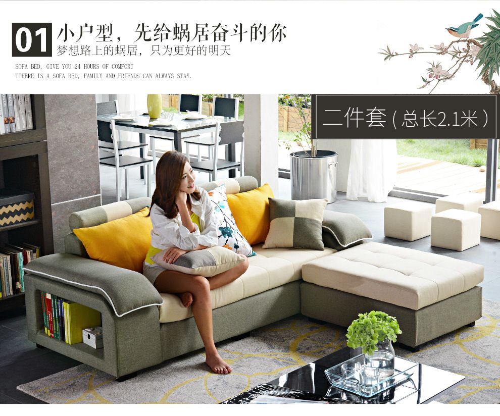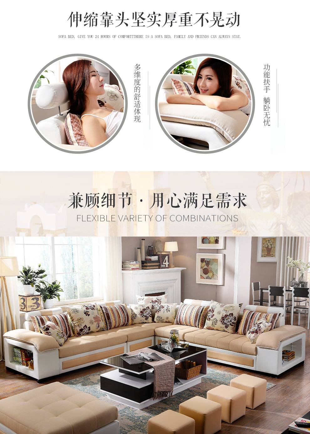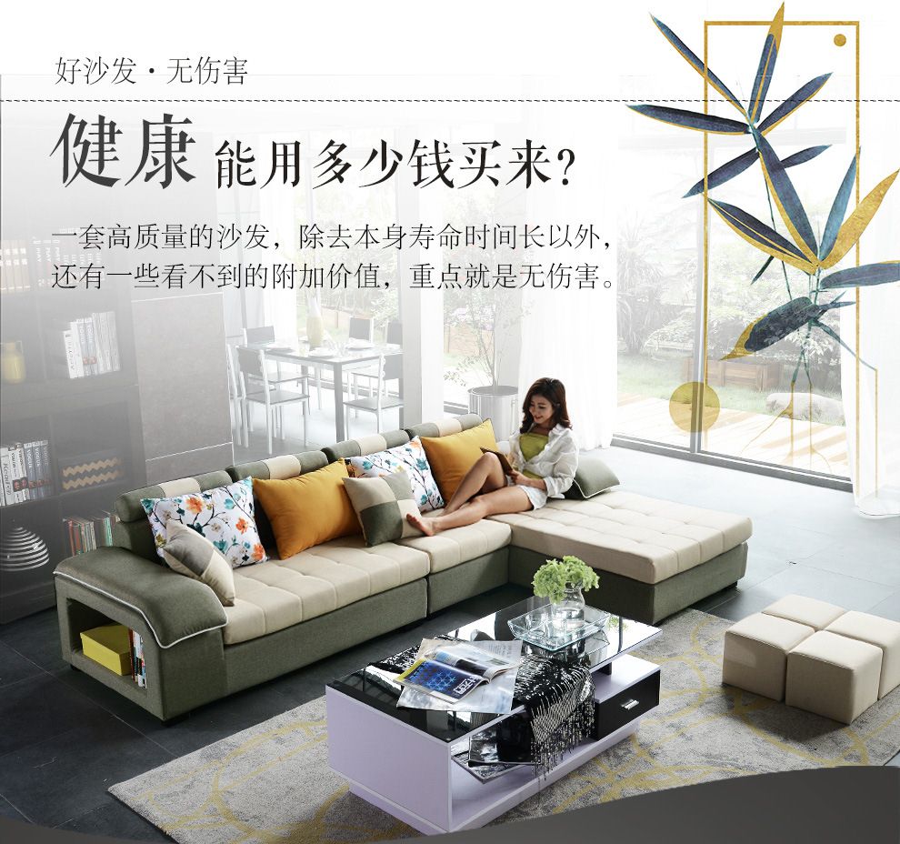 商品名称:中派 沙发 客厅可拆洗布艺沙发实木北欧沙发 海绵款左双+右双+脚