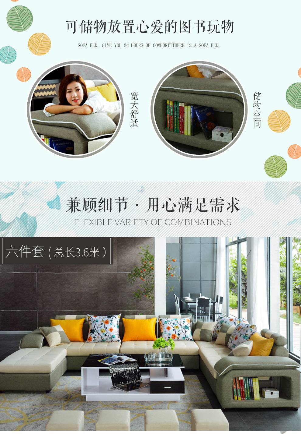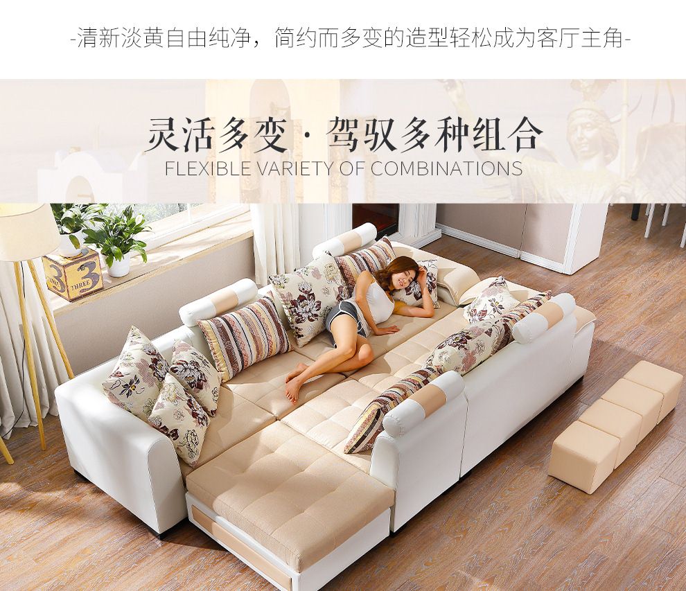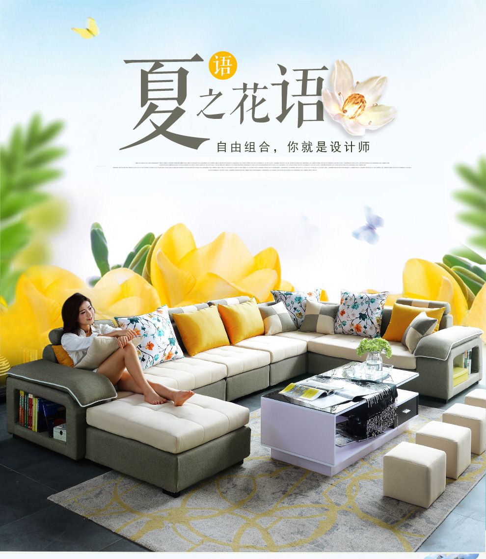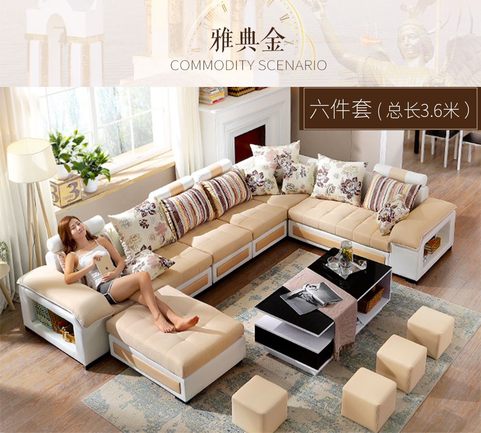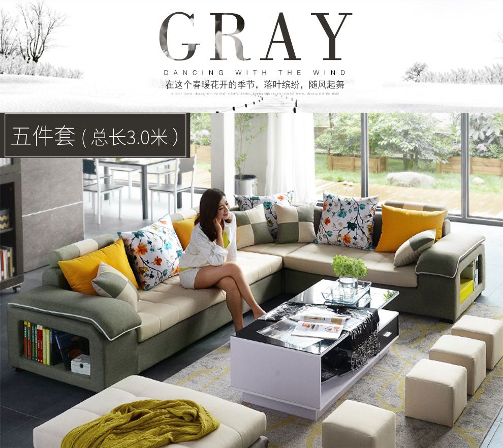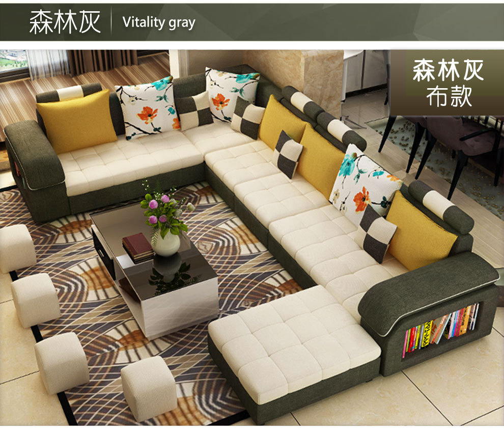商品名称:中派 沙发 客厅可拆洗布艺沙发实木北欧沙发 海绵款左双+右双+脚