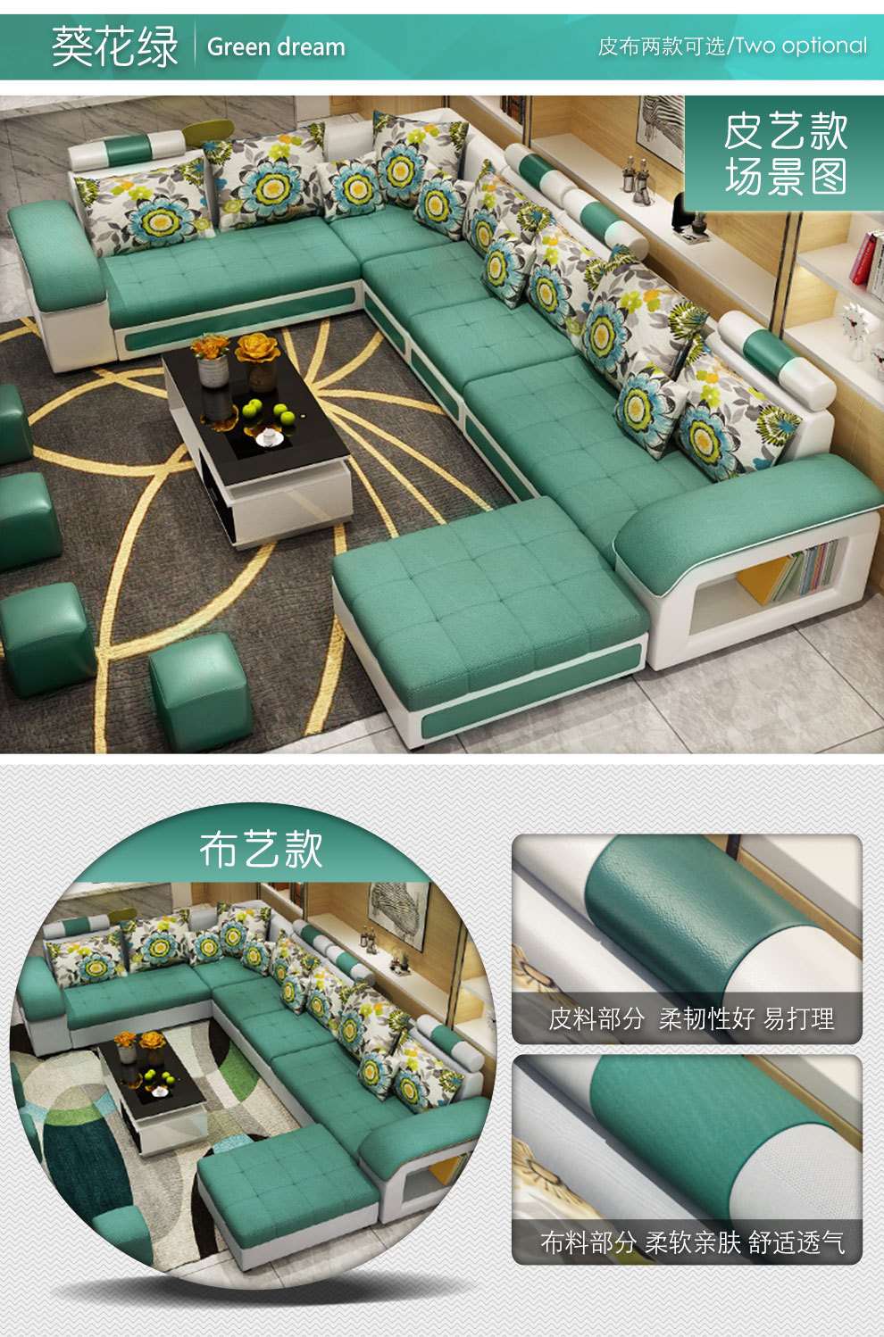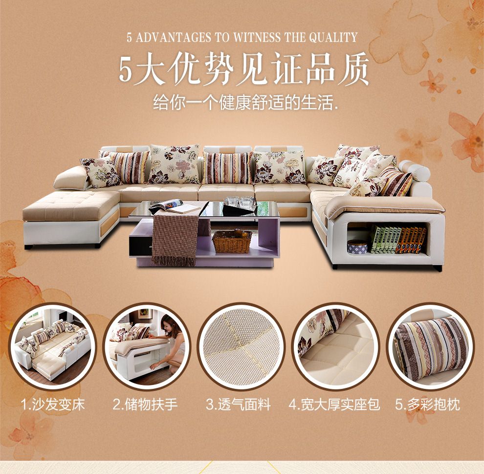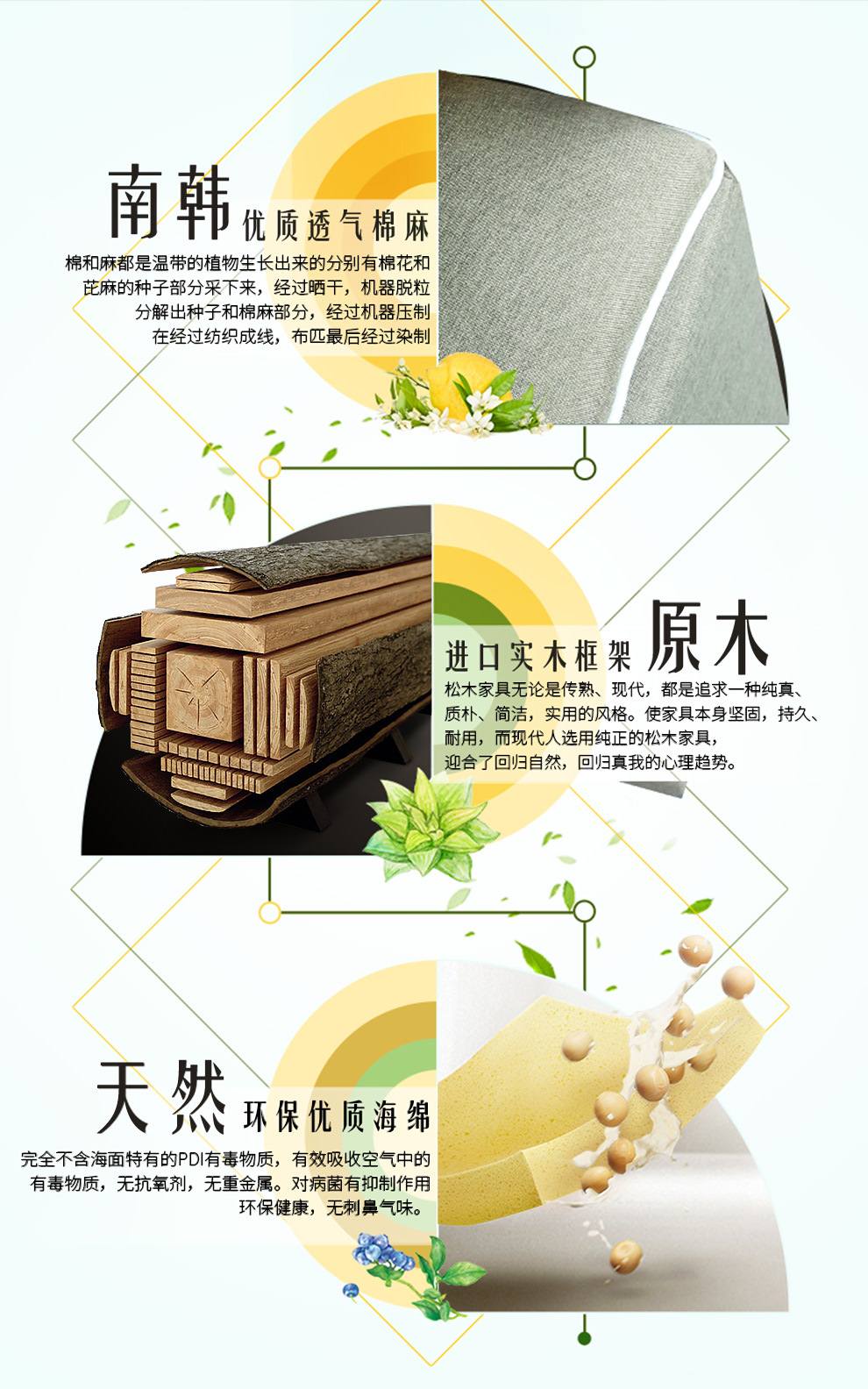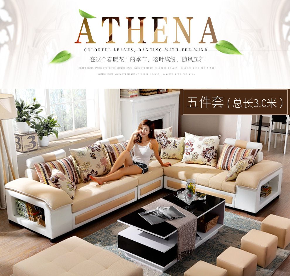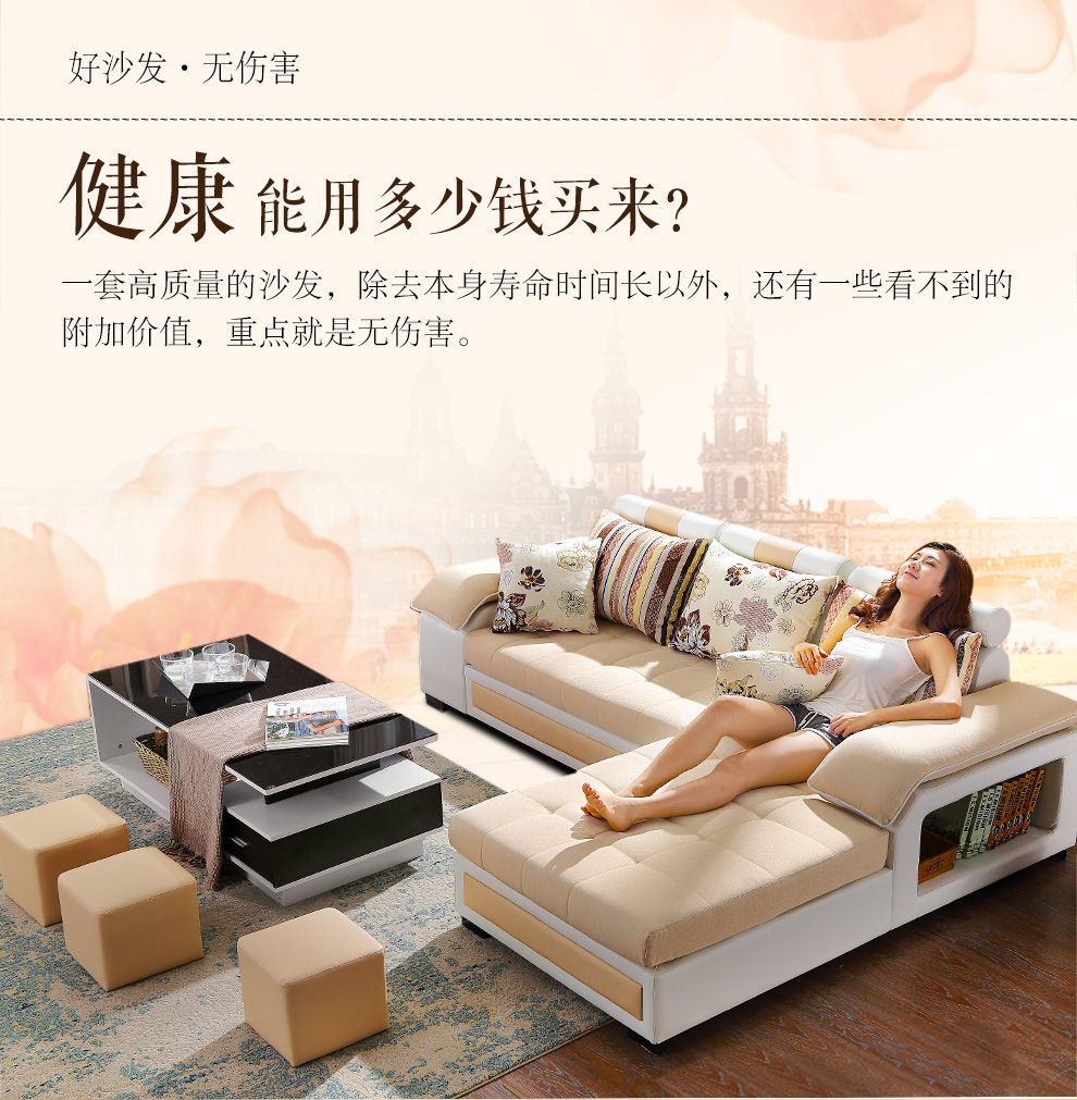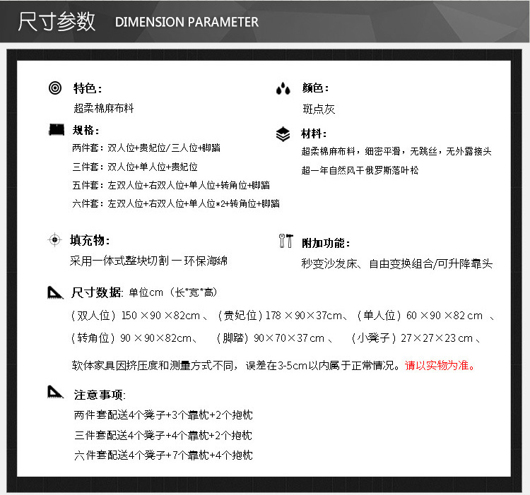 商品名称:中派 沙发 客厅可拆洗布艺沙发实木北欧沙发 海绵款左双+右双+脚