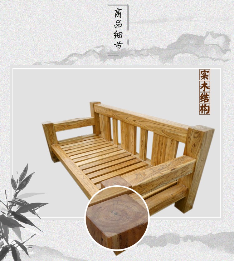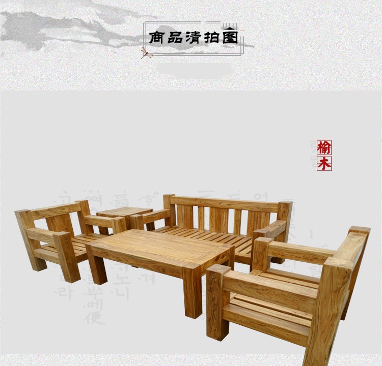 商品名称:田园环保骨架沙发实木沙发组合老榆木韩式现代客厅组合沙发榆木