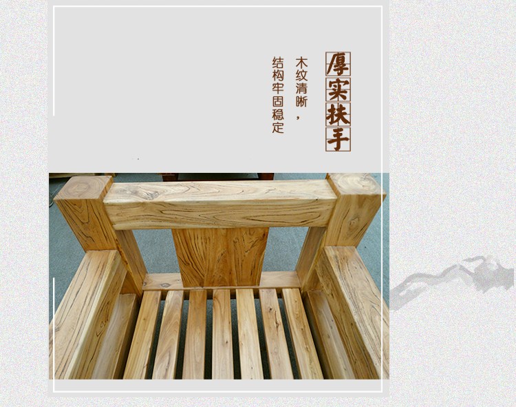 商品名称:田园环保骨架沙发实木沙发组合老榆木韩式现代客厅组合沙发榆木