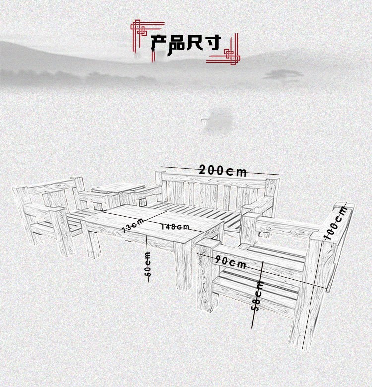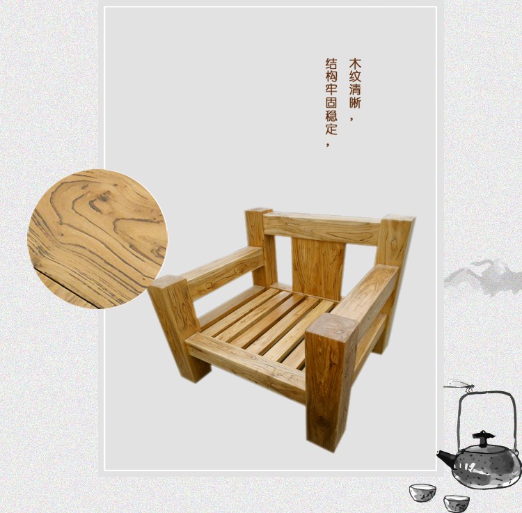商品名称:田园环保骨架沙发实木沙发组合老榆木韩式现代客厅组合沙发榆木