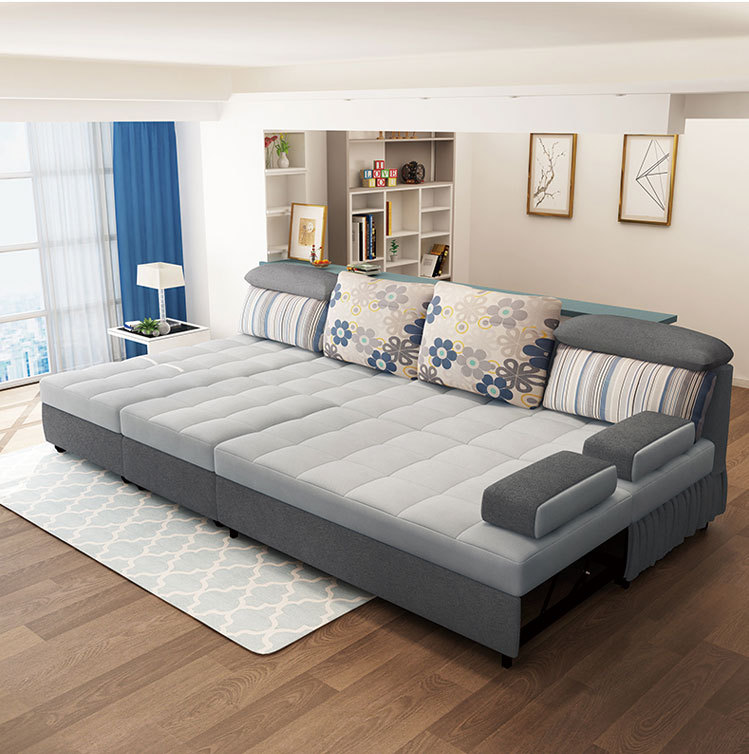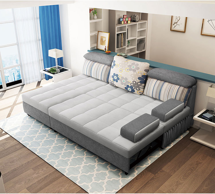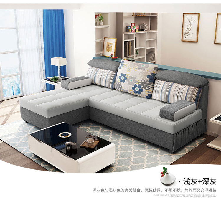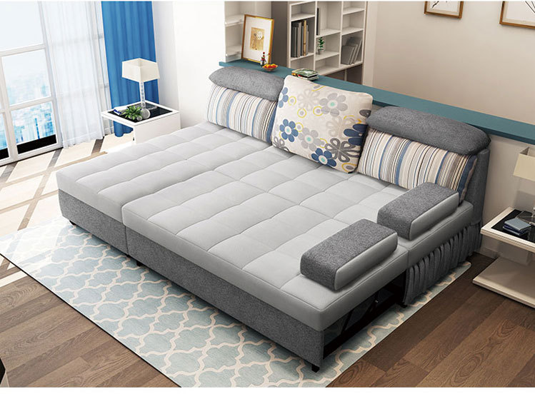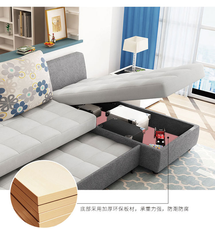 ?欢度国庆?多功能储物沙发床 可移动简约3人沙发 休闲木骨架深灰