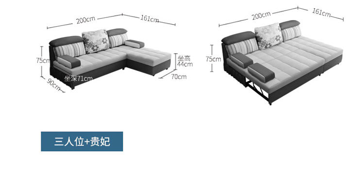 商品名称:?欢度国庆?多功能储物沙发床 可移动简约3人沙发 休闲木骨架深灰