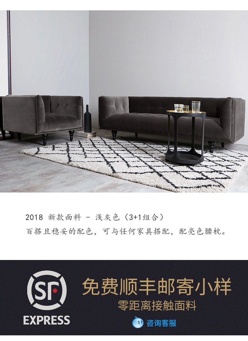 商品名称:?欢度国庆?新款时尚布艺沙发 美式客厅设计实木骨架海绵懒人组合