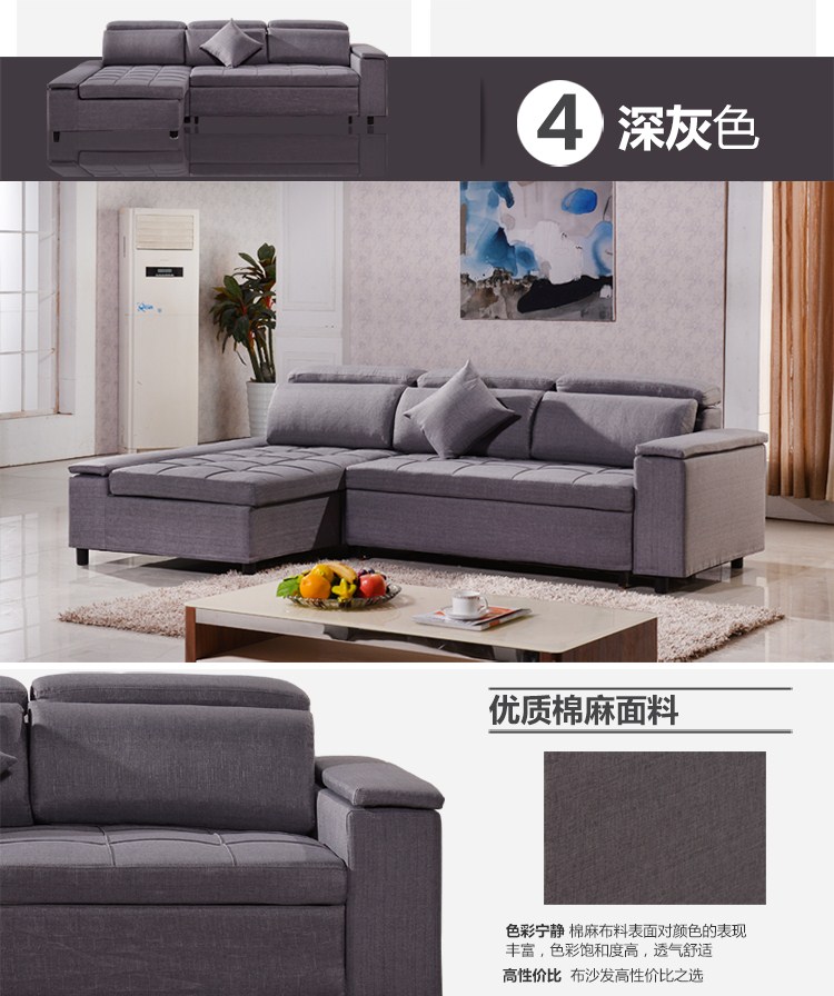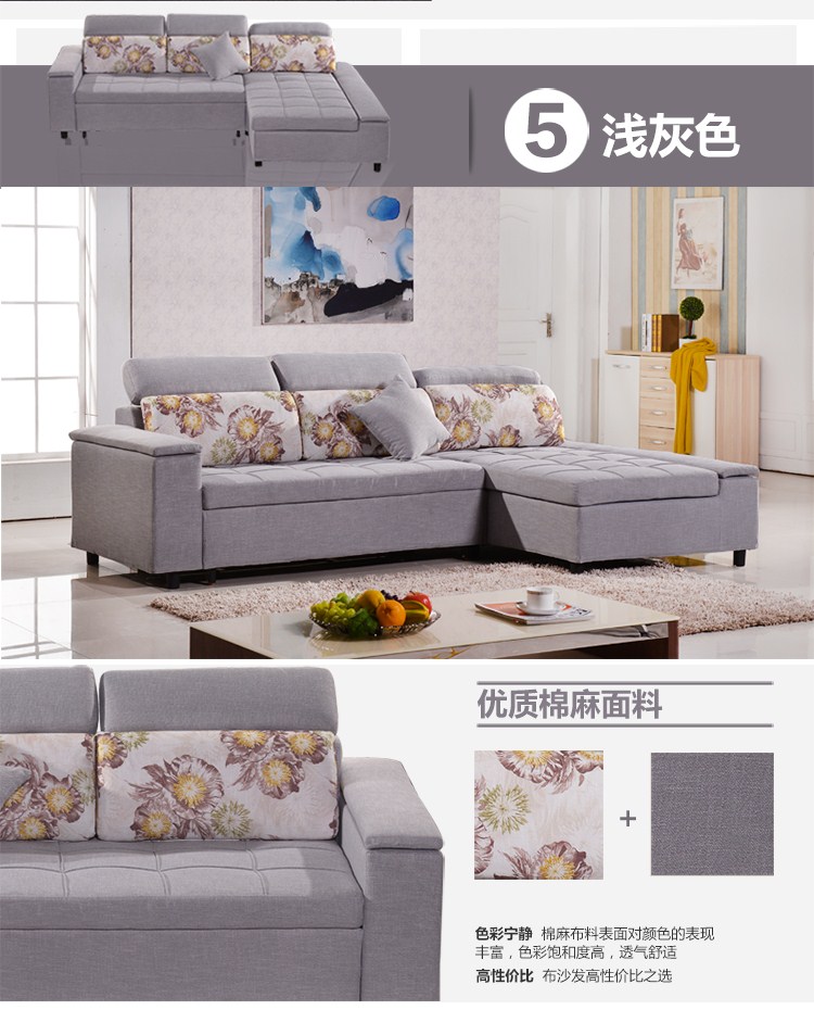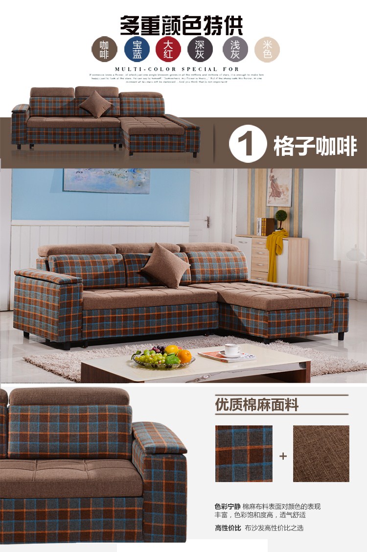 商品名称:小户型客厅可折叠沙发床2.7储物可拆洗两用抽拉多功能布艺沙发床