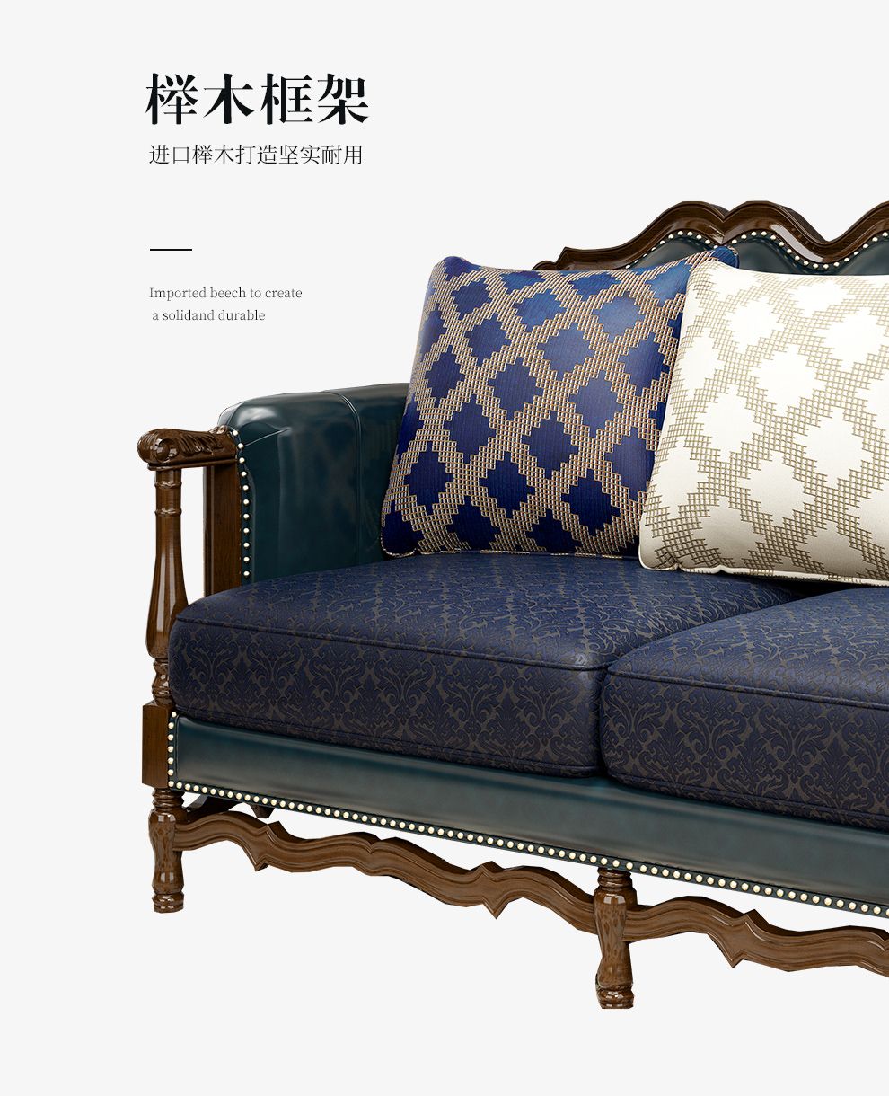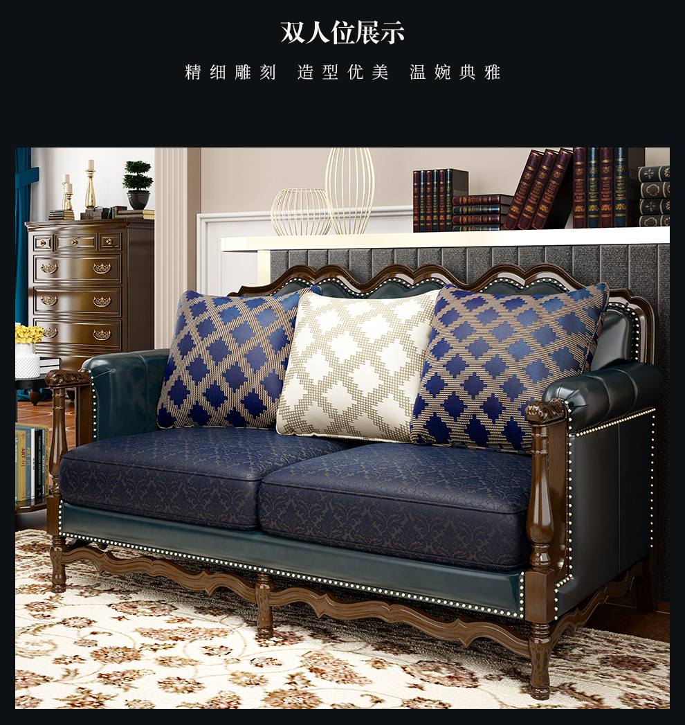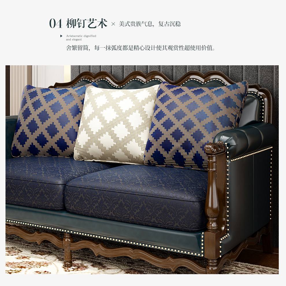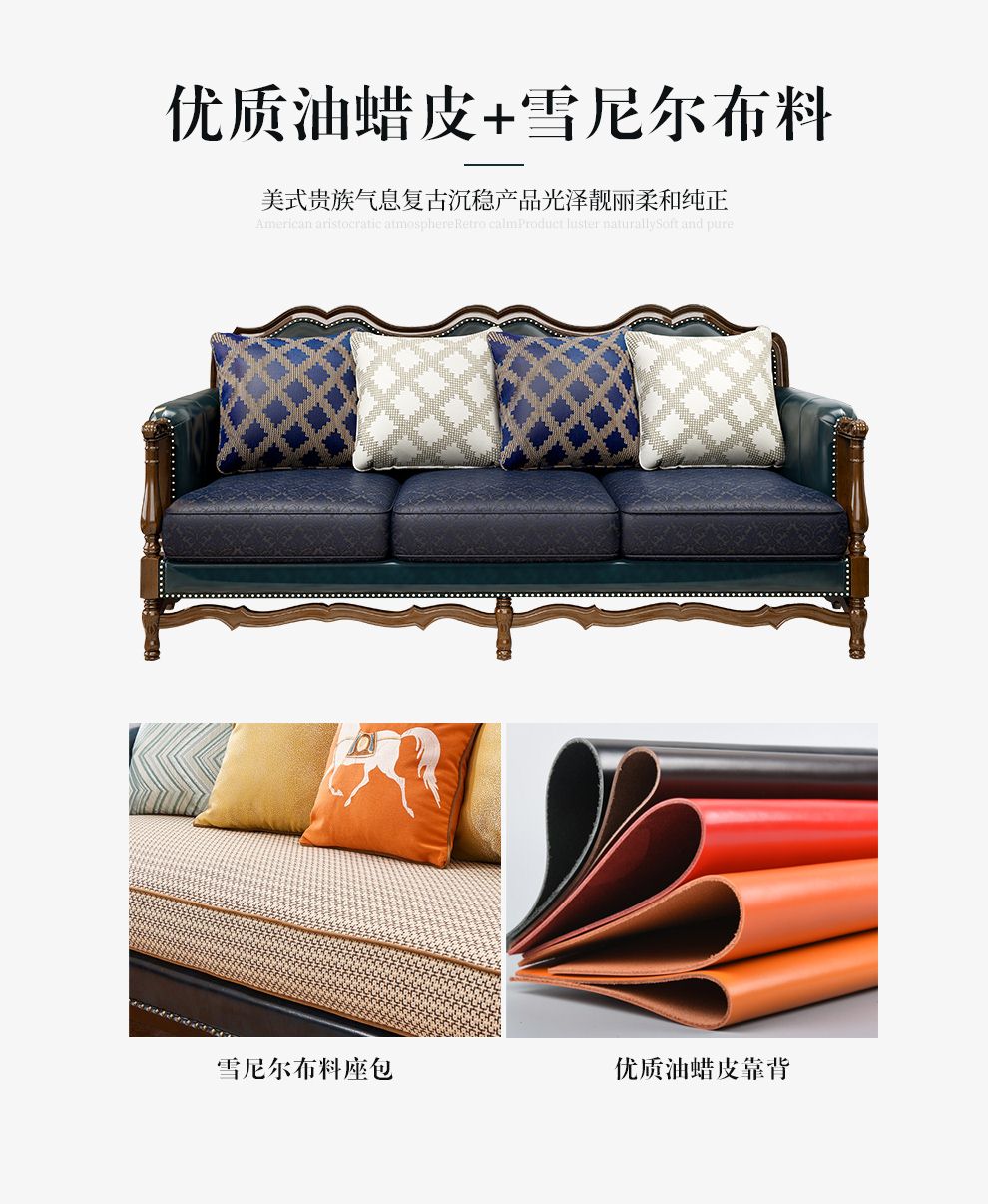 商品名称:梦美斯宣 美式沙发实木油蜡皮真皮沙发乡村复古简约可拆洗皮配布