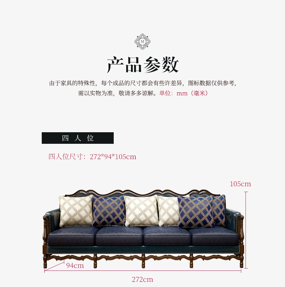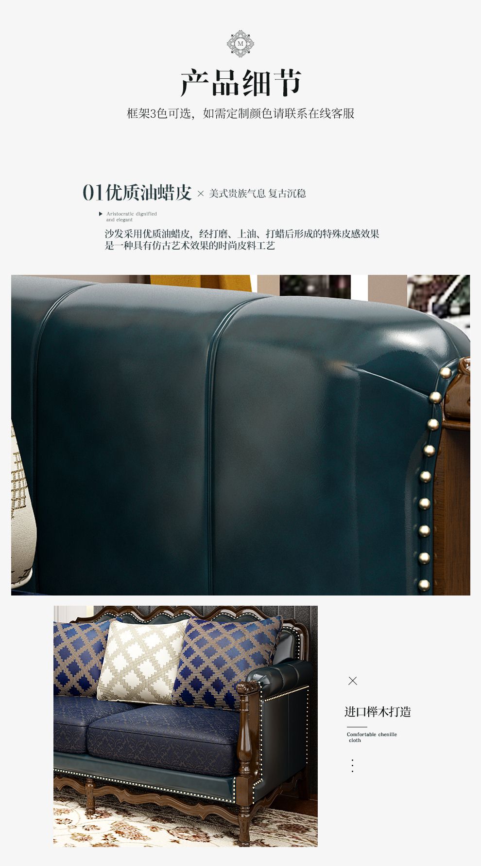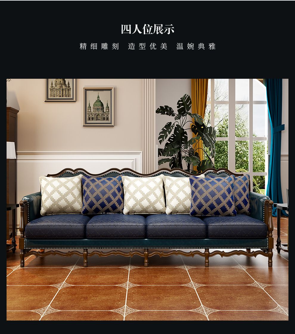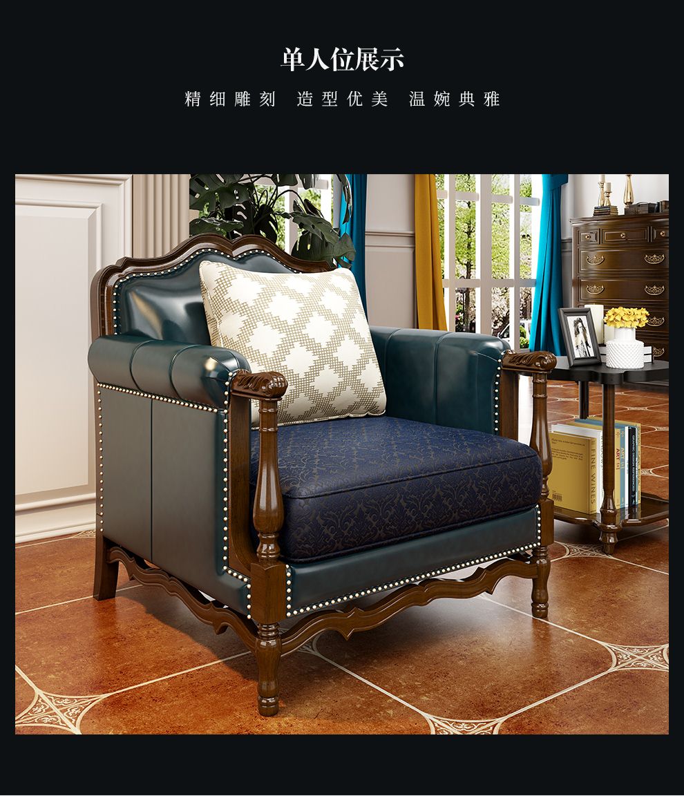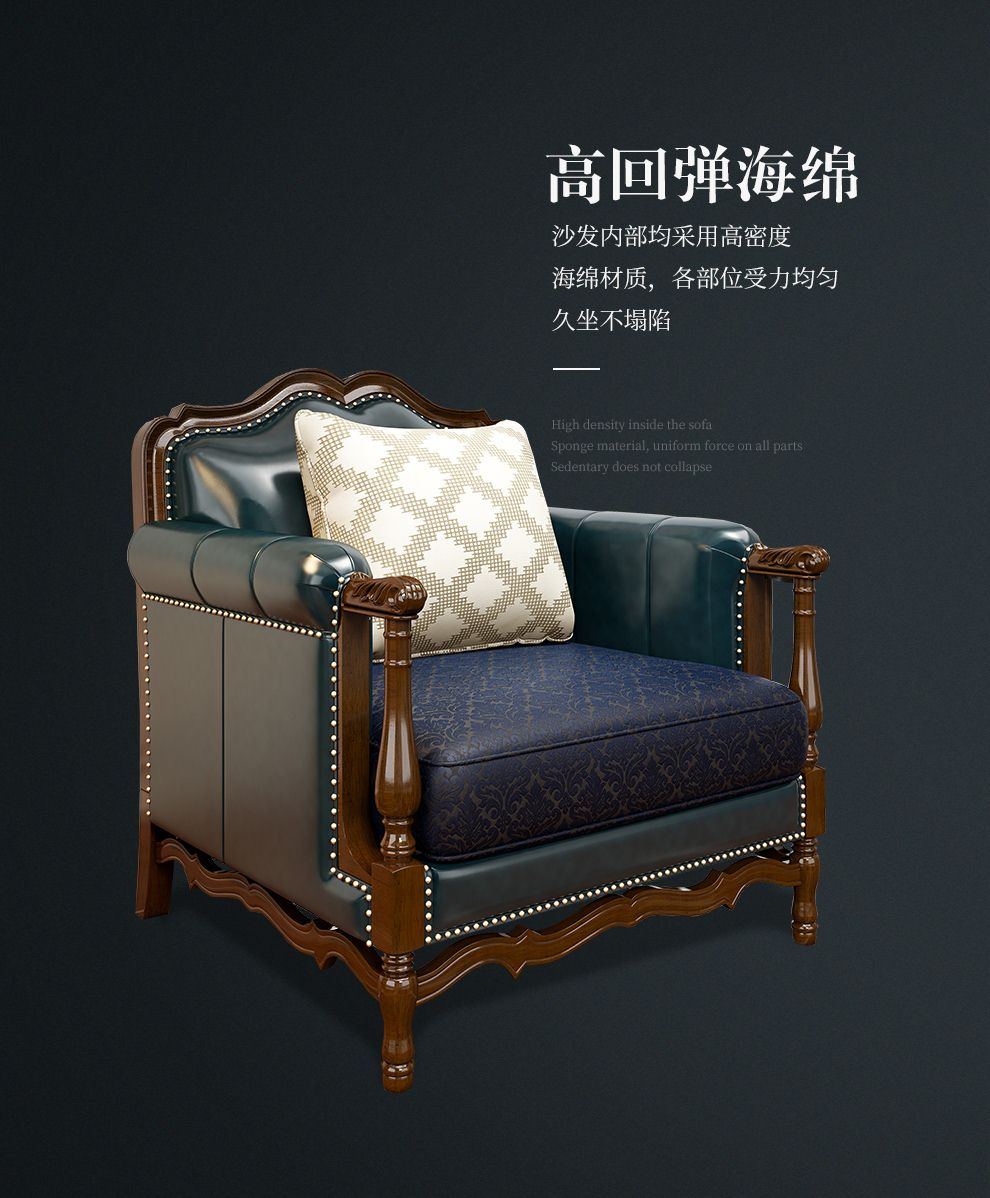 商品名称:梦美斯宣 美式沙发实木油蜡皮真皮沙发乡村复古简约可拆洗皮配布