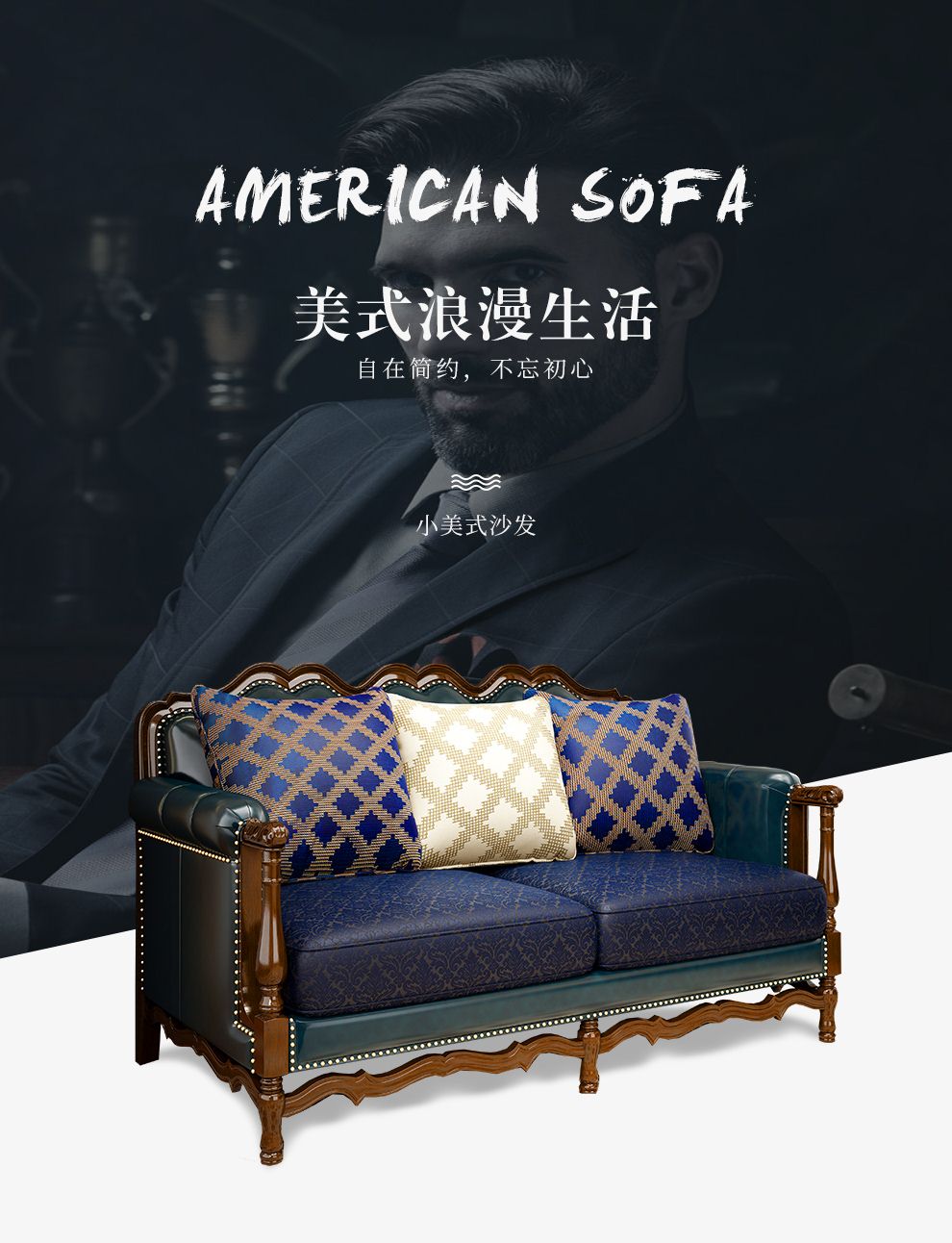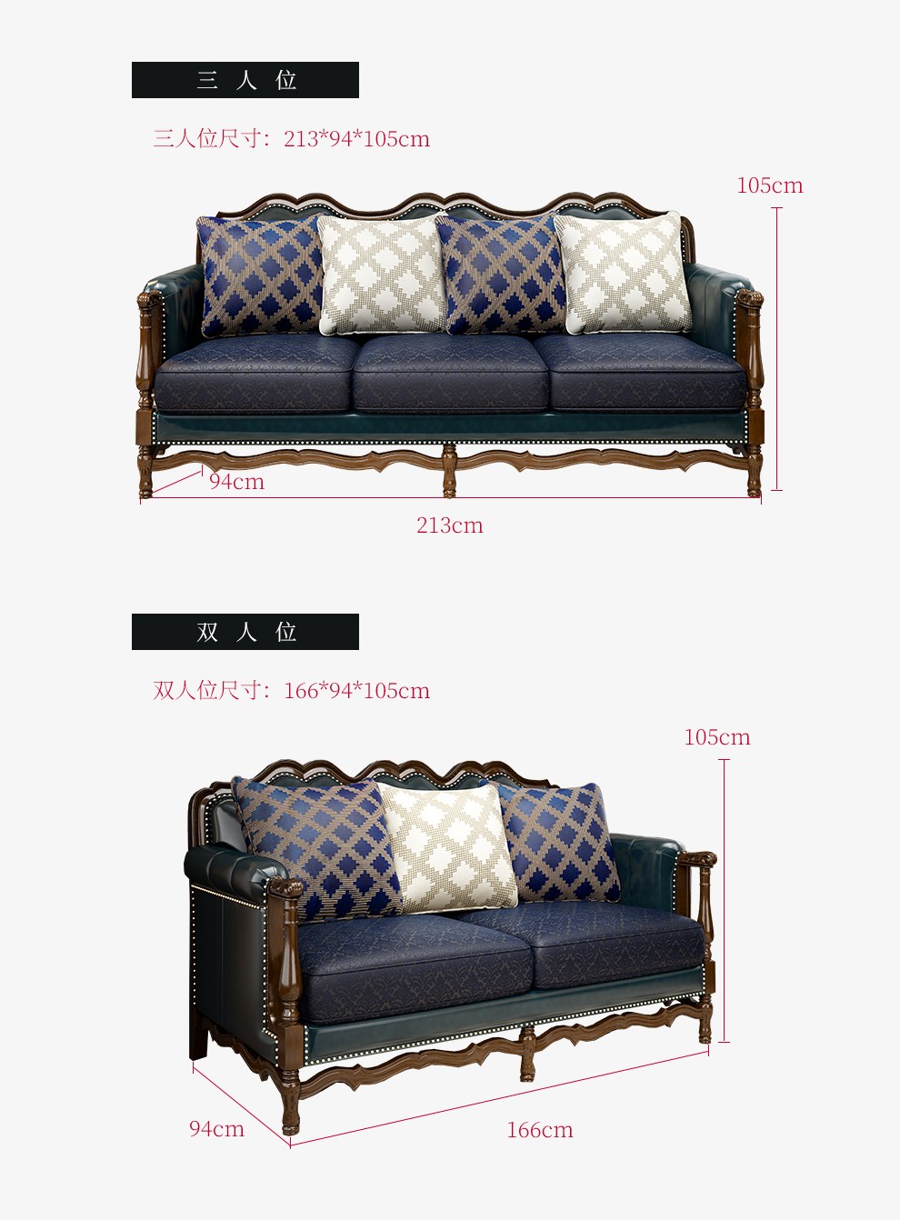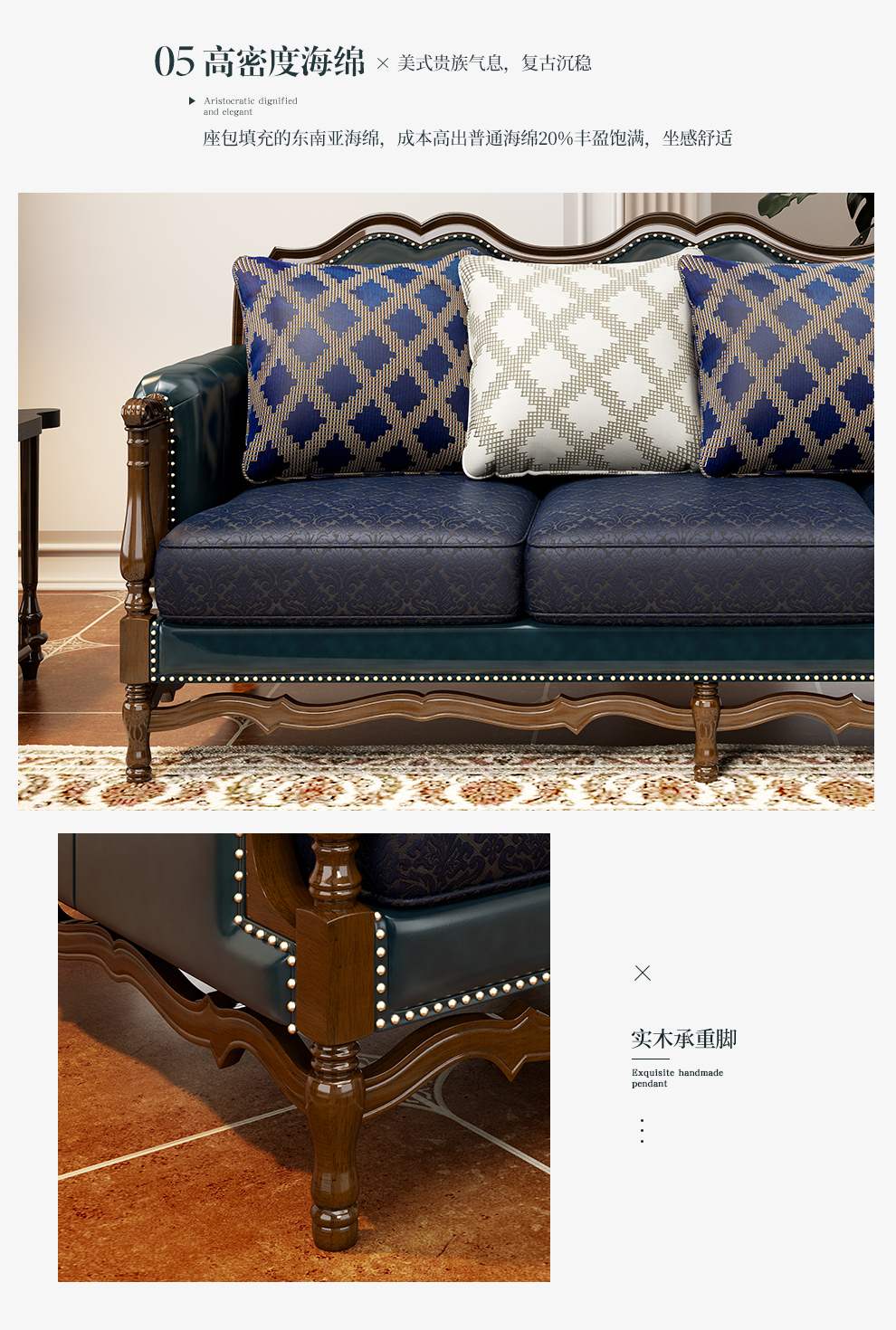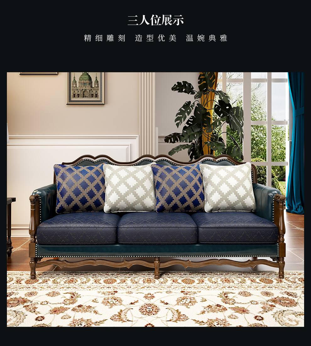 商品名称:梦美斯宣 美式沙发实木油蜡皮真皮沙发乡村复古简约可拆洗皮配布