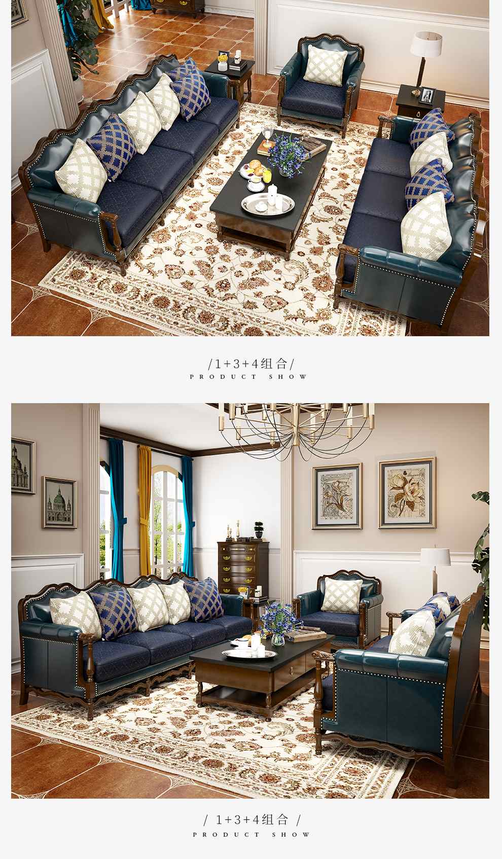梦美斯宣 美式沙发实木油蜡皮真皮沙发乡村复古简约可拆洗皮配布