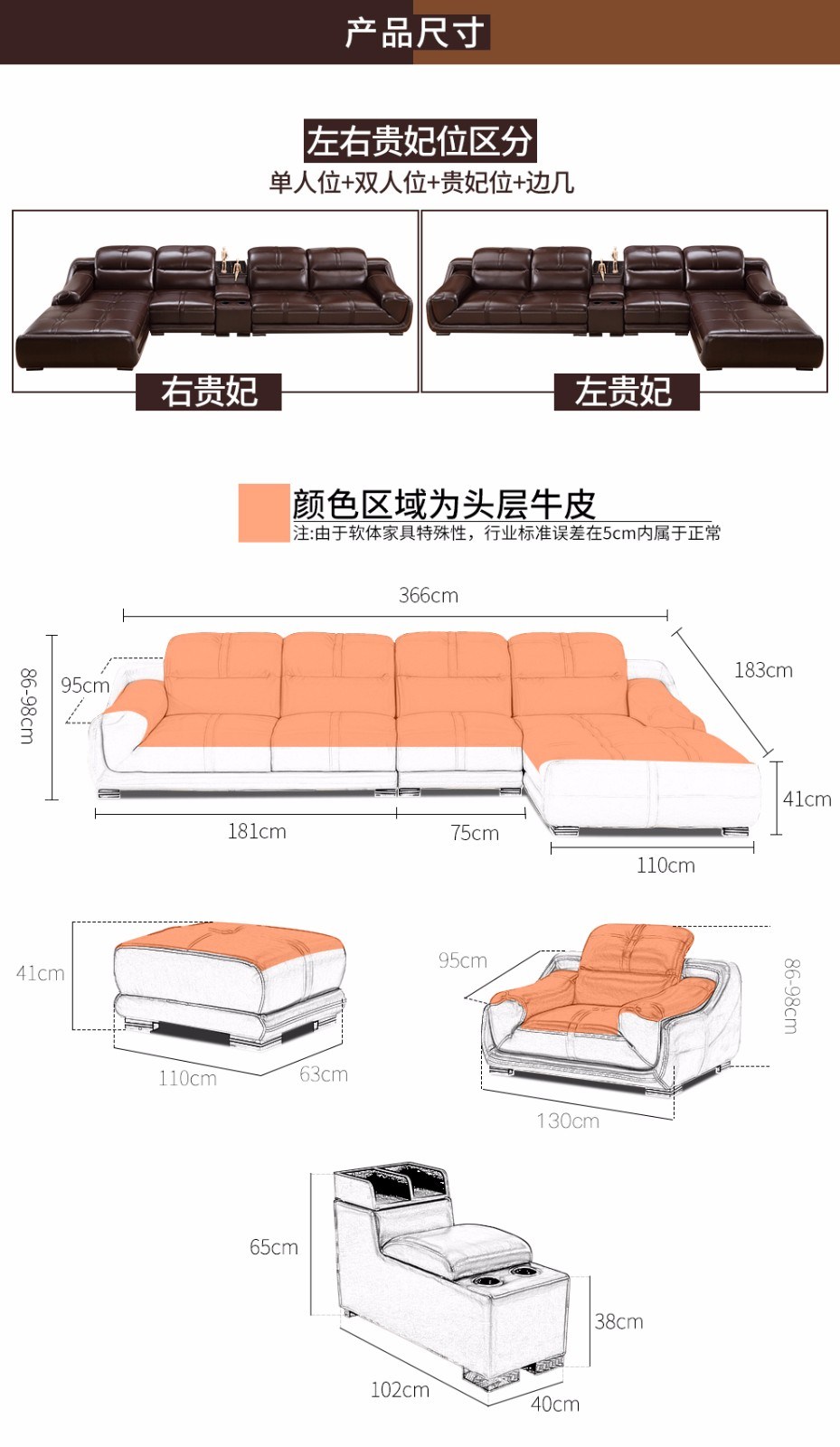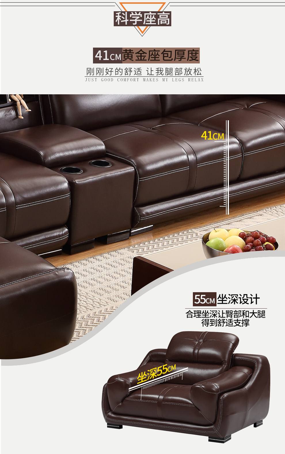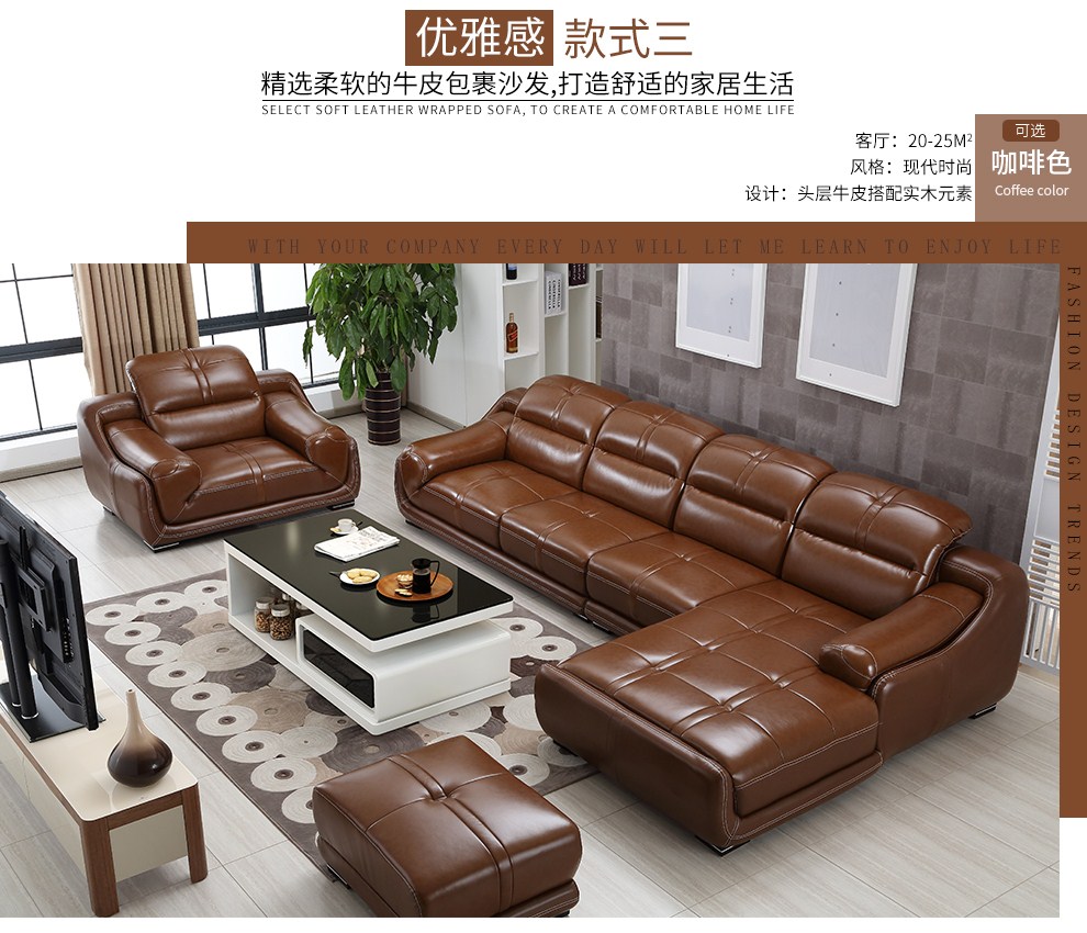 商品名称:摩天 沙发 真皮沙发头层牛皮沙发小户型客厅家具 单人+双人+贵妃