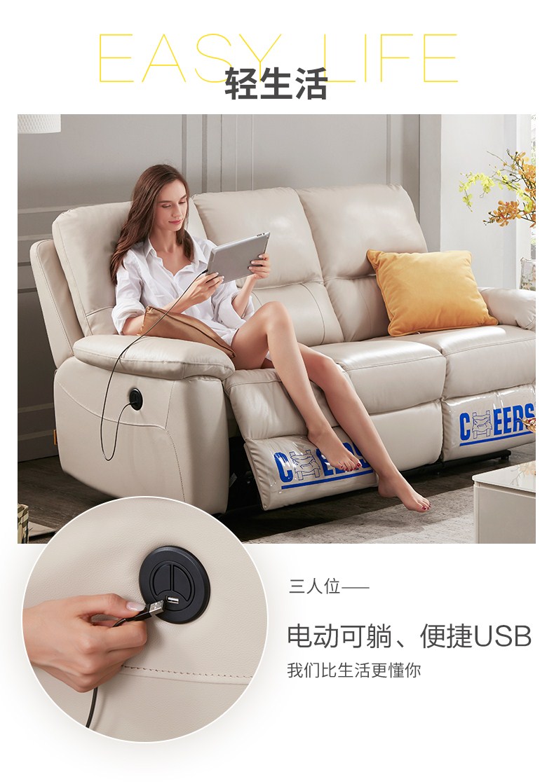 商品名称:芝华仕(CHEERS) 头等舱 真皮沙发 现代客厅组合功能沙发 5522