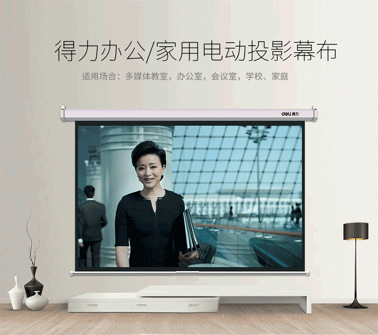 得力(deli)100英寸 4:3电动调节投影幕布投影布家用投影仪幕布50